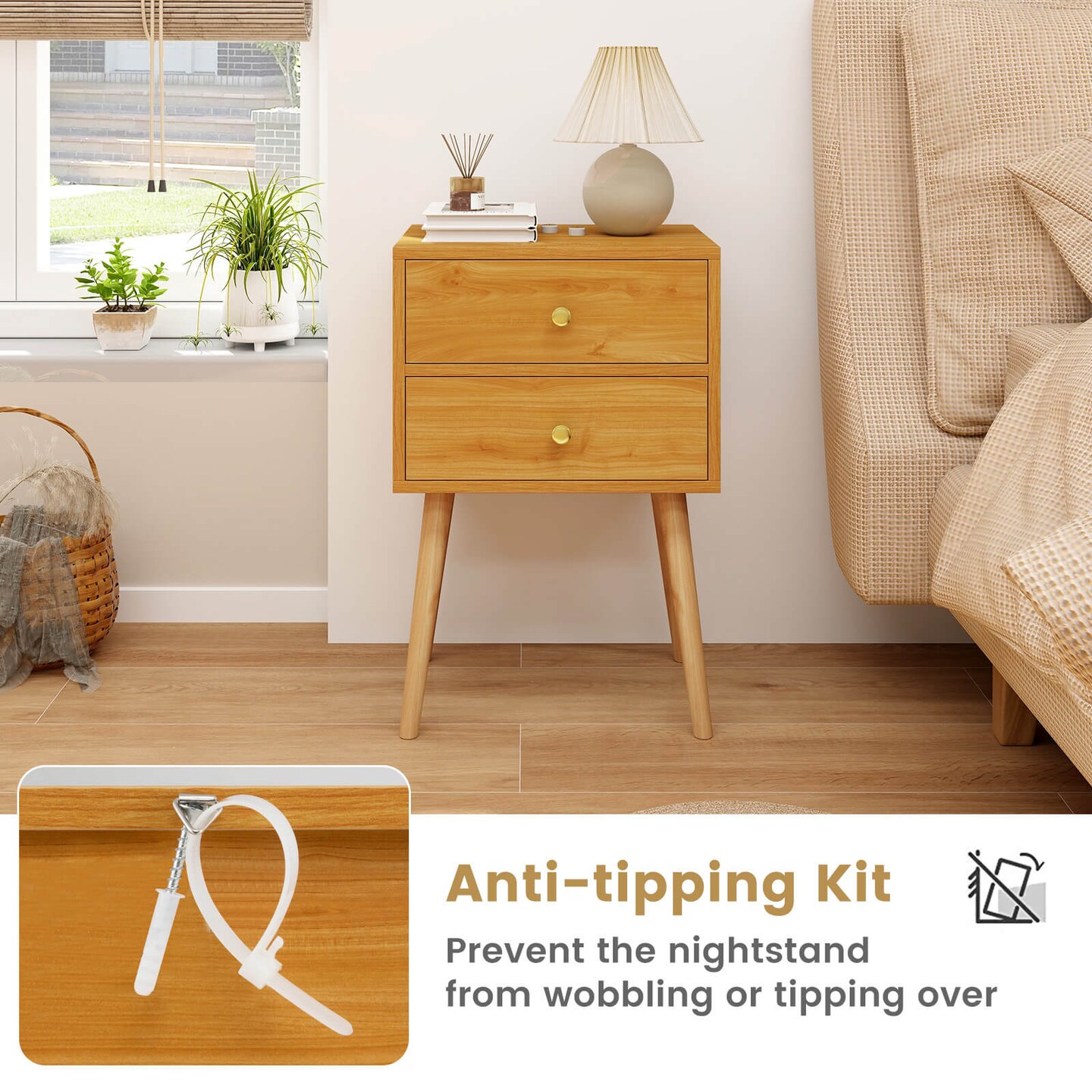 Costway Mid Century Modern 2 Drawers Nightstand In Natural Sofa Side Table End Table