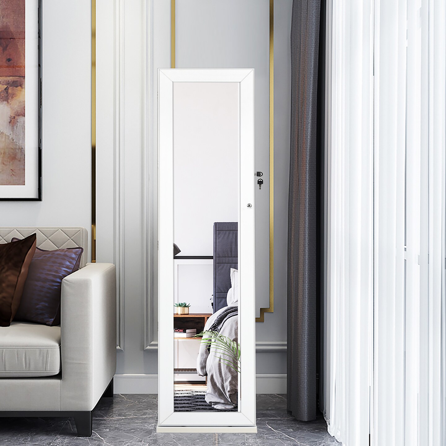 Costway Mirrored Jewelry Cabinet Armoire Lockable Standing Storage Organizer with Shelf Black/White/Coffee/Dark Brown