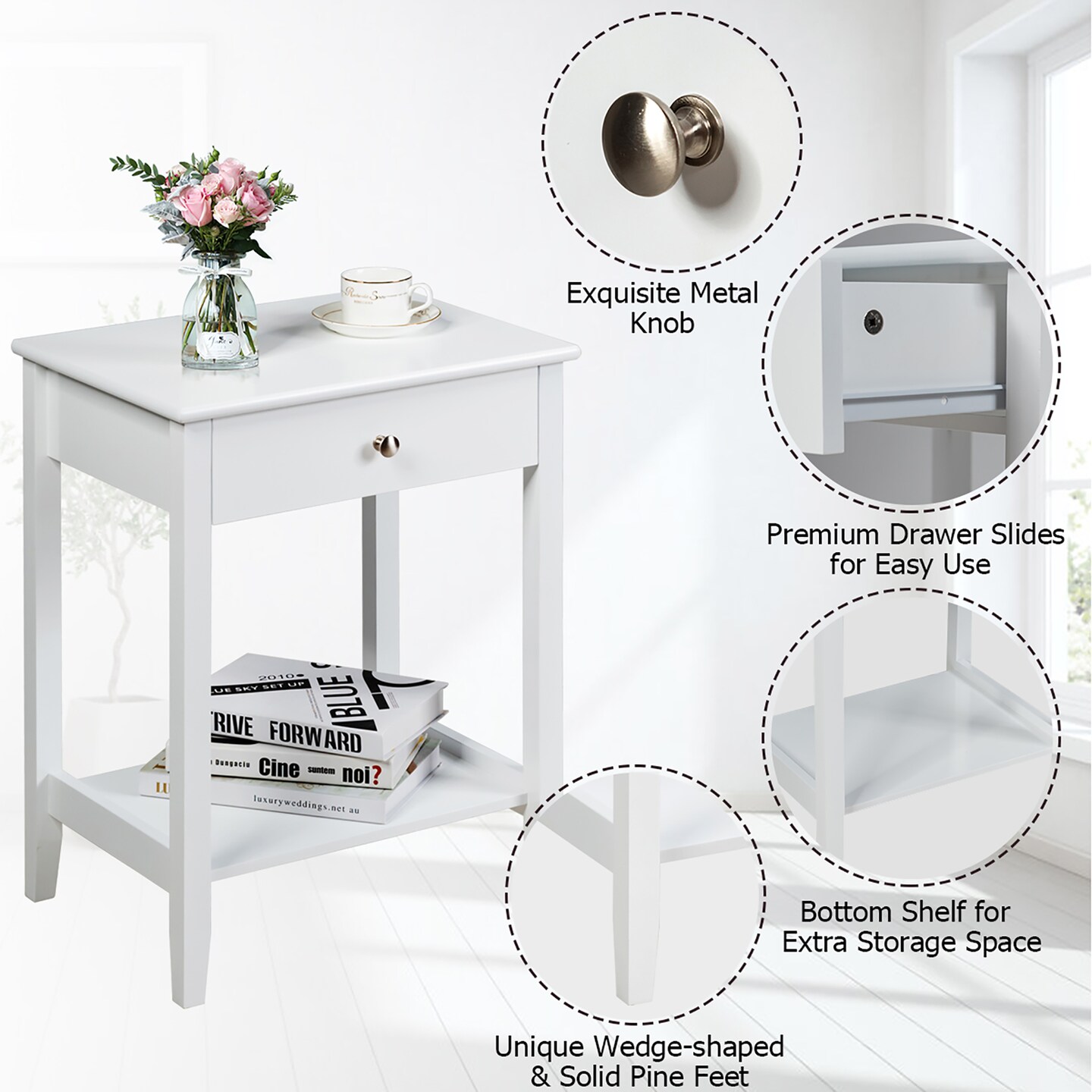 Costway Nightstand End Table Storage Display Bedroom Furniture Drawer Shelf Beside White\Brown\Grey