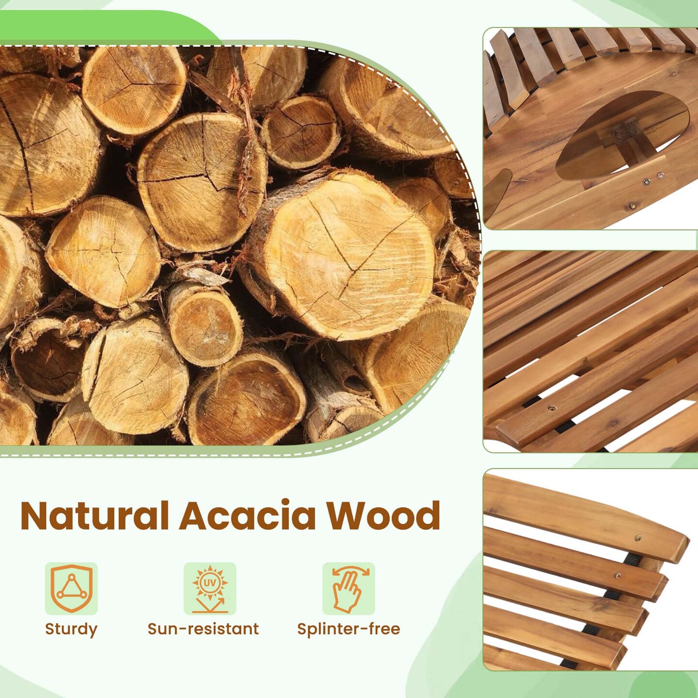 Costway Outdoor Double Chaise Lounge for 2 with High Back Slatted Seat Stopper for Patio