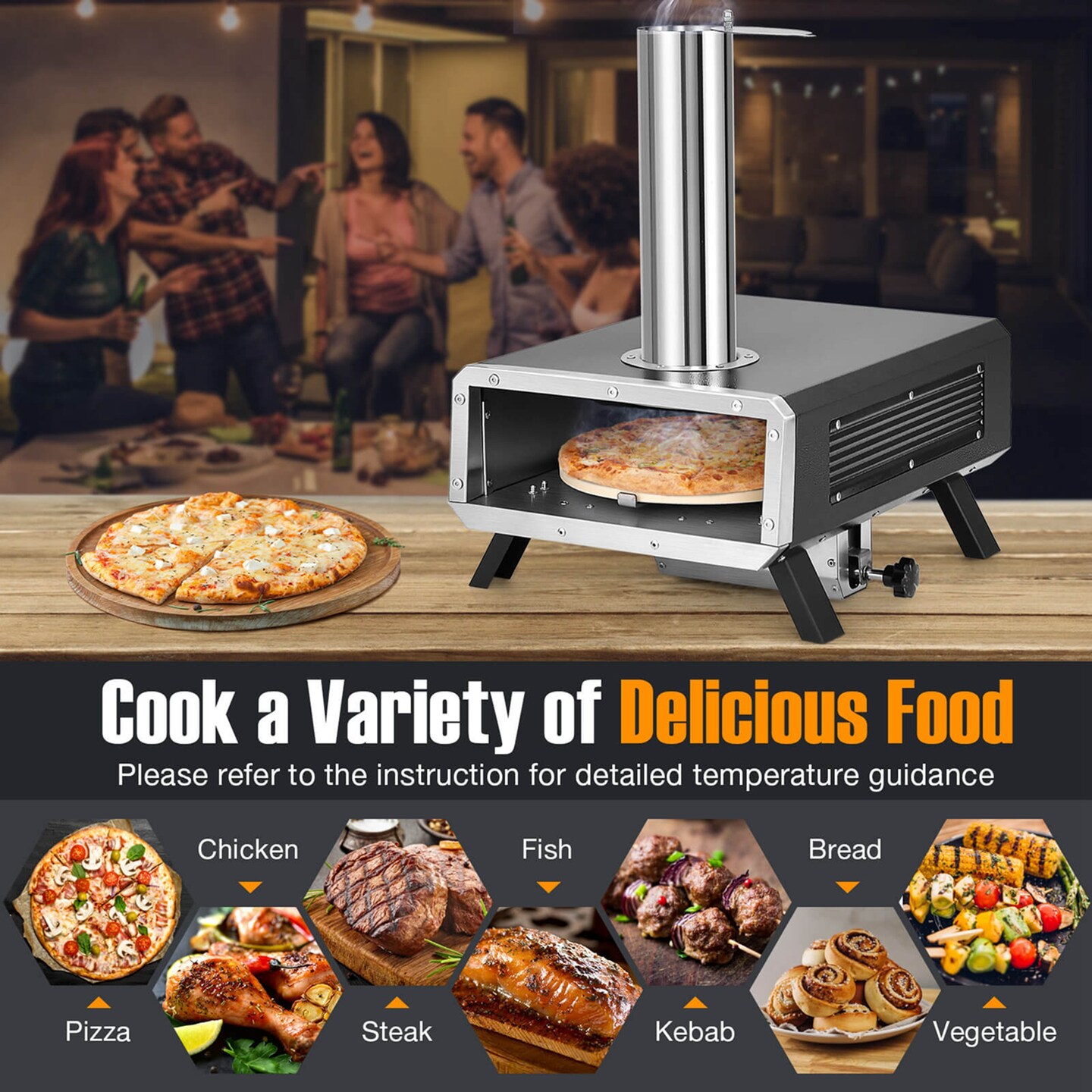 Costway Outdoor Pizza Oven Wood Pellet Pizza Stove with 12" Round Rotatable Pizza Stone