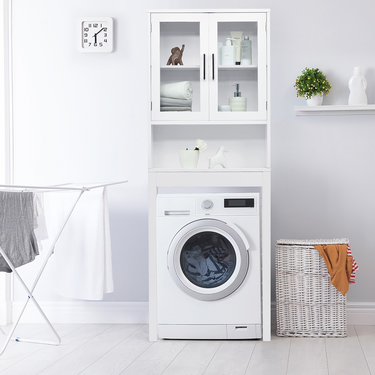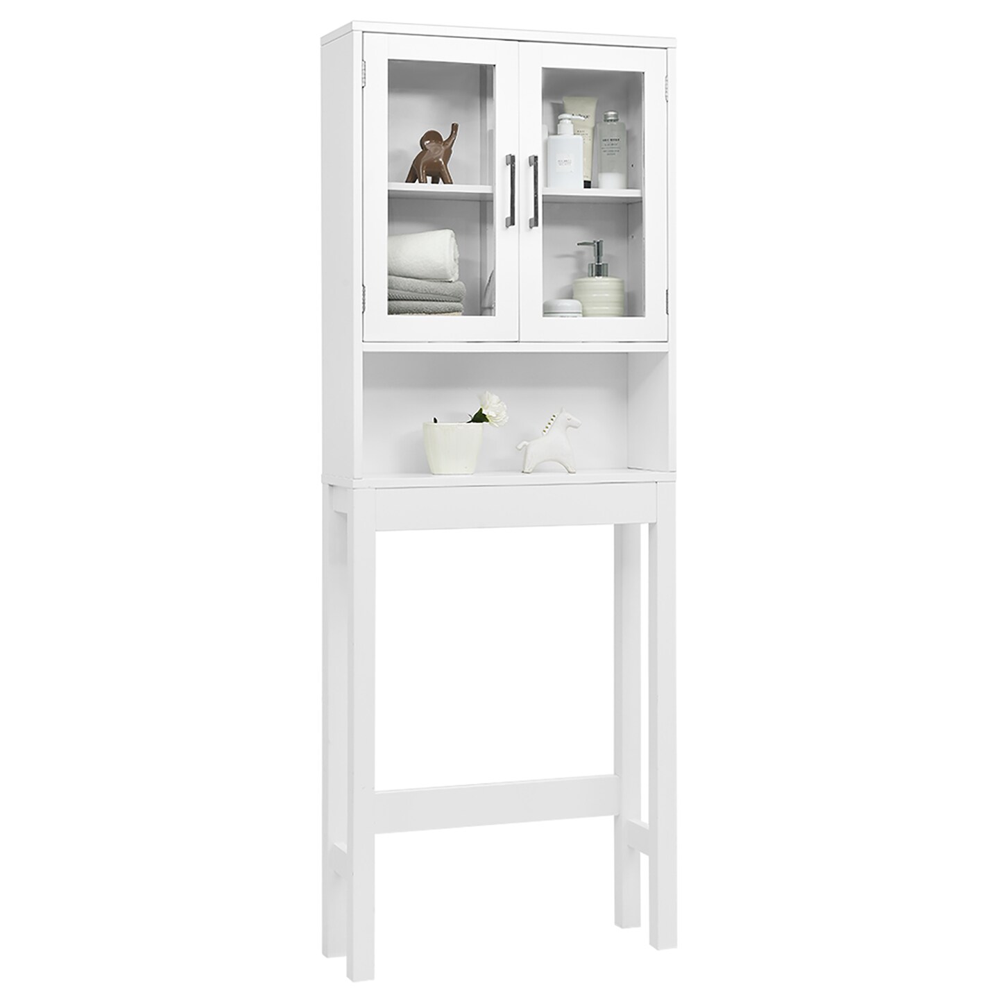 Costway Over the Toilet Storage Cabinet Bathroom Space Saver w/Tempered Glass Door White