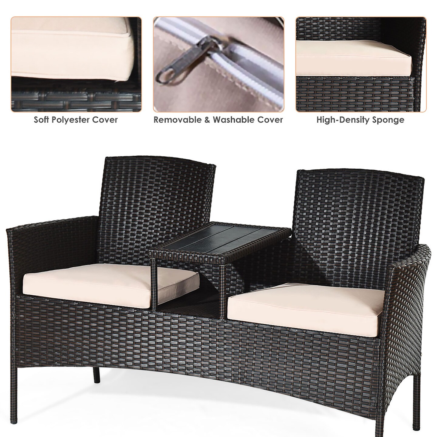 Costway Patented Patio Rattan Conversation Set Loveseat Sofa Cushioned Coffee Table Mix Brown