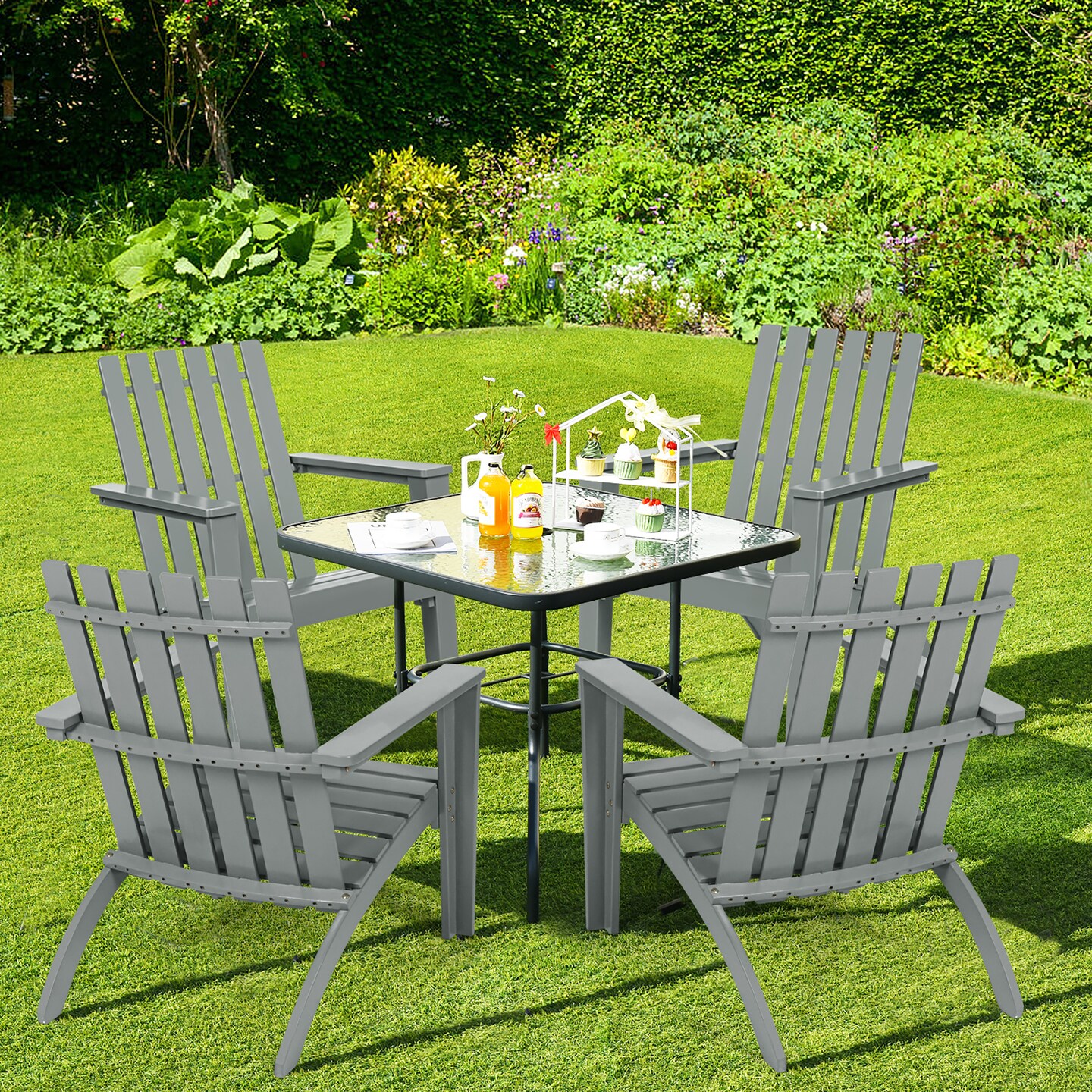 Costway Patio Adirondack Chair Acacia Wood Lounge Armrest Garden Deck White\Black\Gray