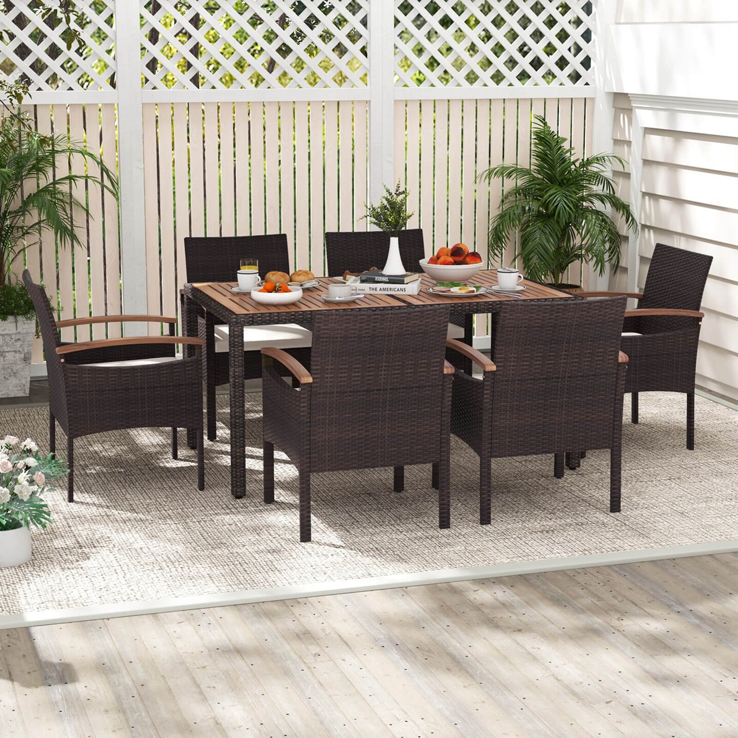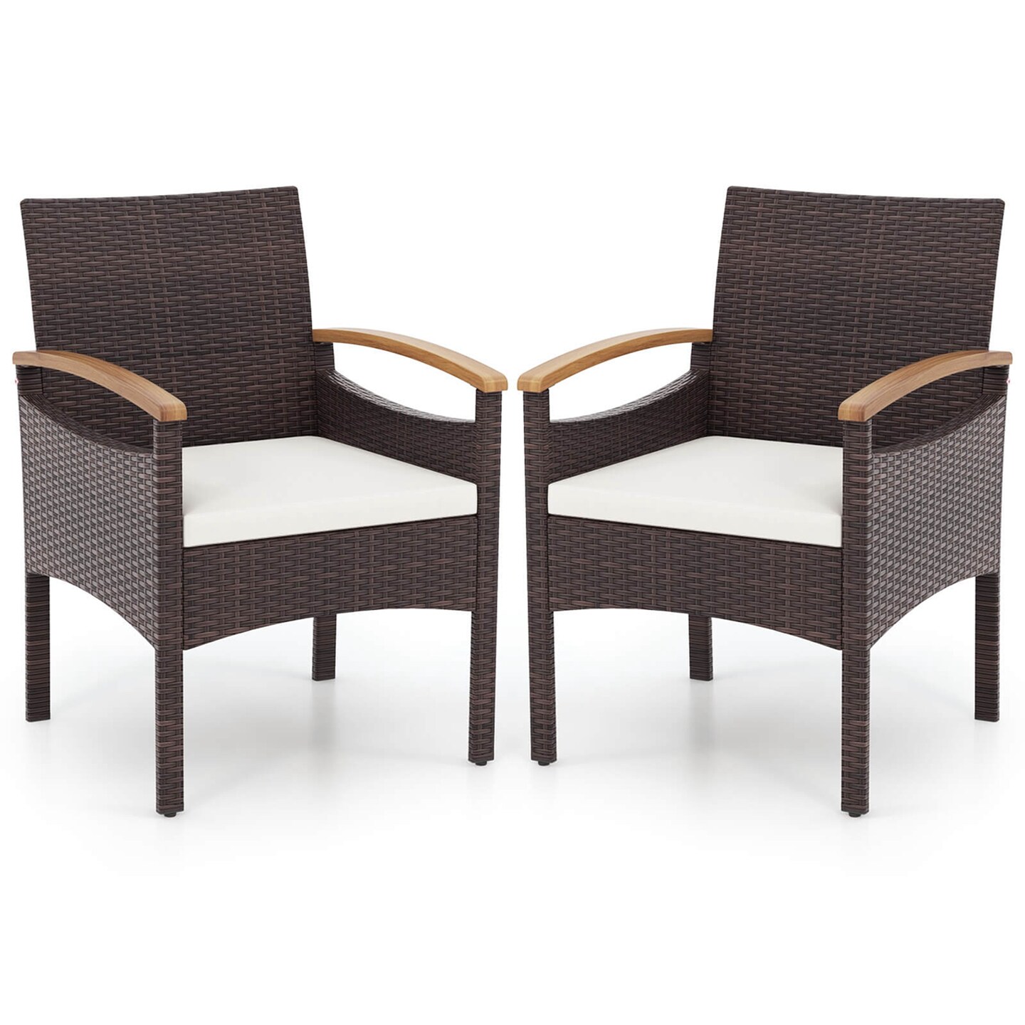 Costway Patio Dining Chairs Set of 2/4 with Acacia Wood Armrest Heavy Duty Metal Frame