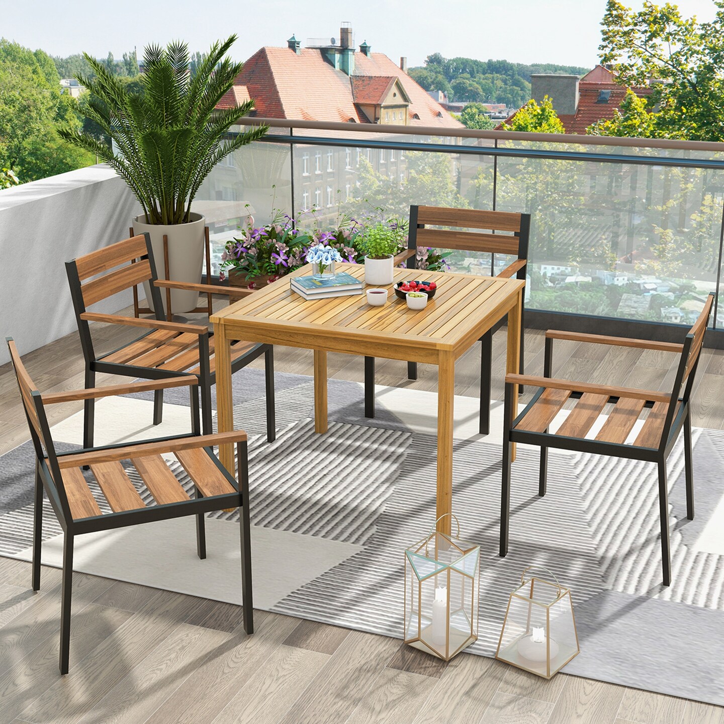 Costway Patio Dining Table Acacia Wood Square Outdoor Bistro with 1.9'' Umbrella Hole Yard