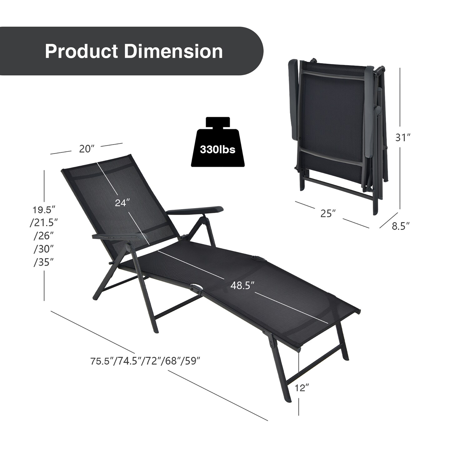 Costway Patio Folding Chaise Lounge Chair Outdoor Portable Reclining Lounger Beach Black\Brown\Grey