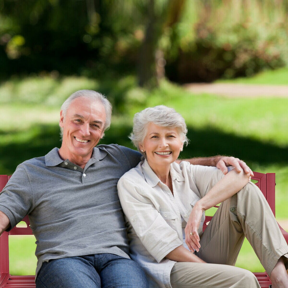 Costway Patio Garden Bench Park Yard Outdoor Furniture Cast Iron Porch Chair Red