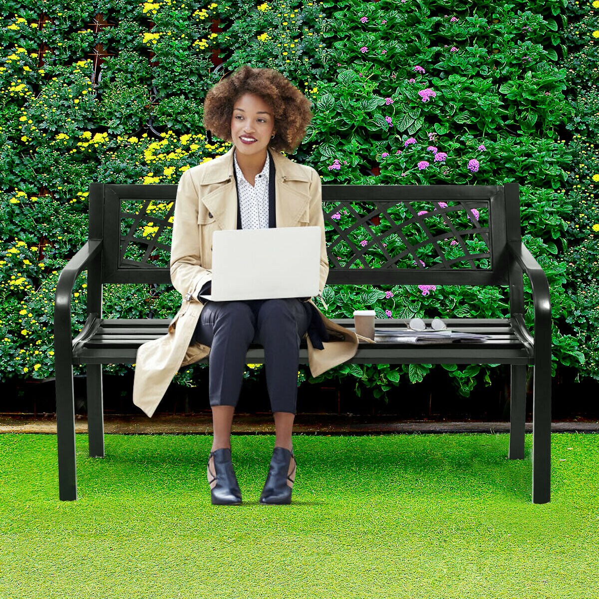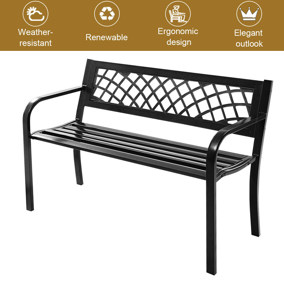 Costway Patio Park Garden Bench Porch Path Chair Outdoor Deck Steel Frame