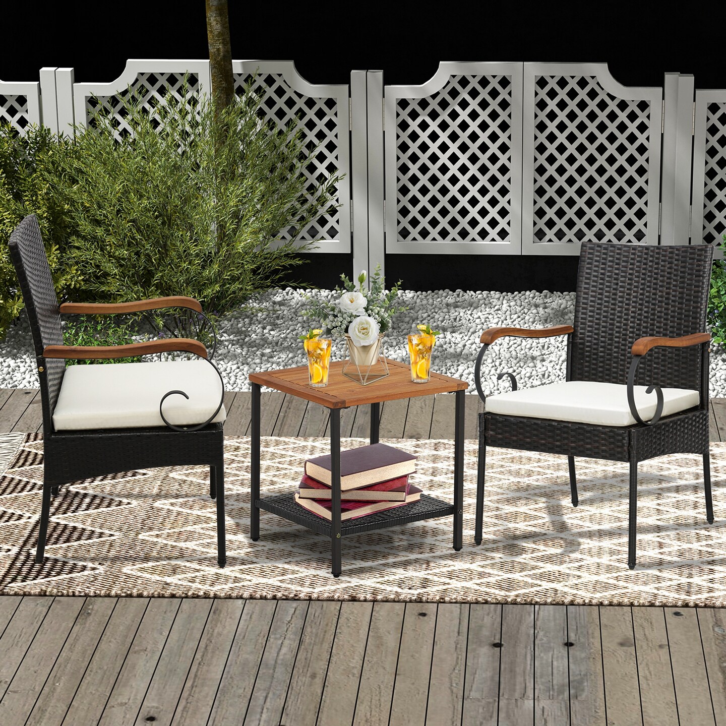 Costway Patio PE Wicker Chairs Acacia Wood Armrests with Soft Zippered Cushion Garden