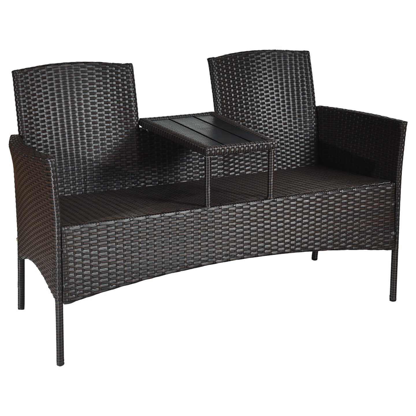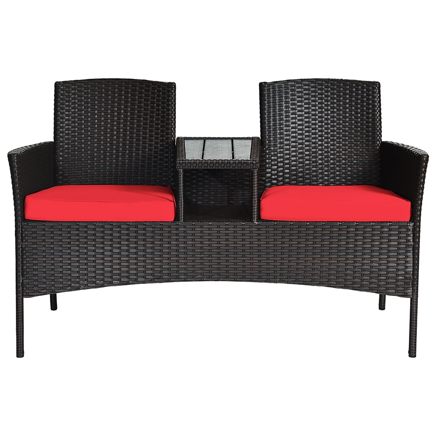 Costway Patio Rattan Conversation Set Loveseat Sofa Cushioned Coffee Table Turquois\Red