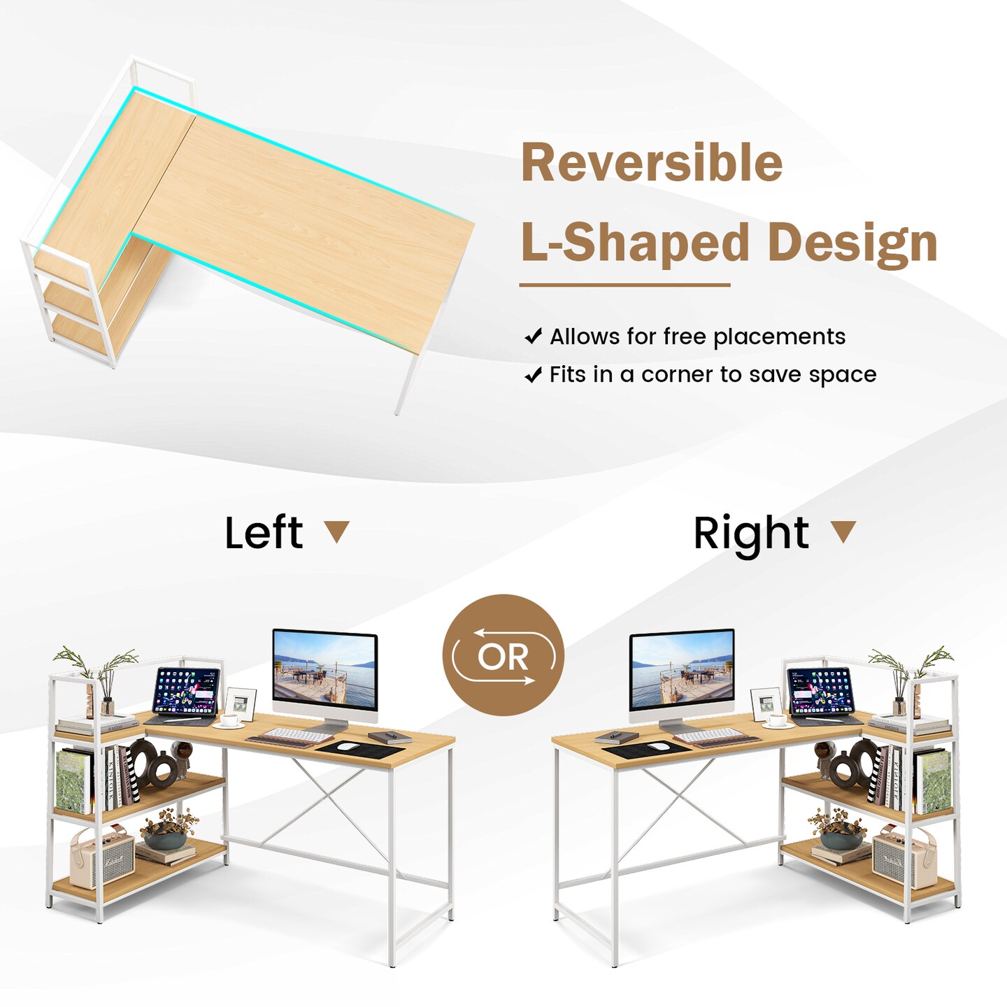 Costway Reversible L Shaped Computer Desk Corner Workstation with 3-Tier Open Shelf