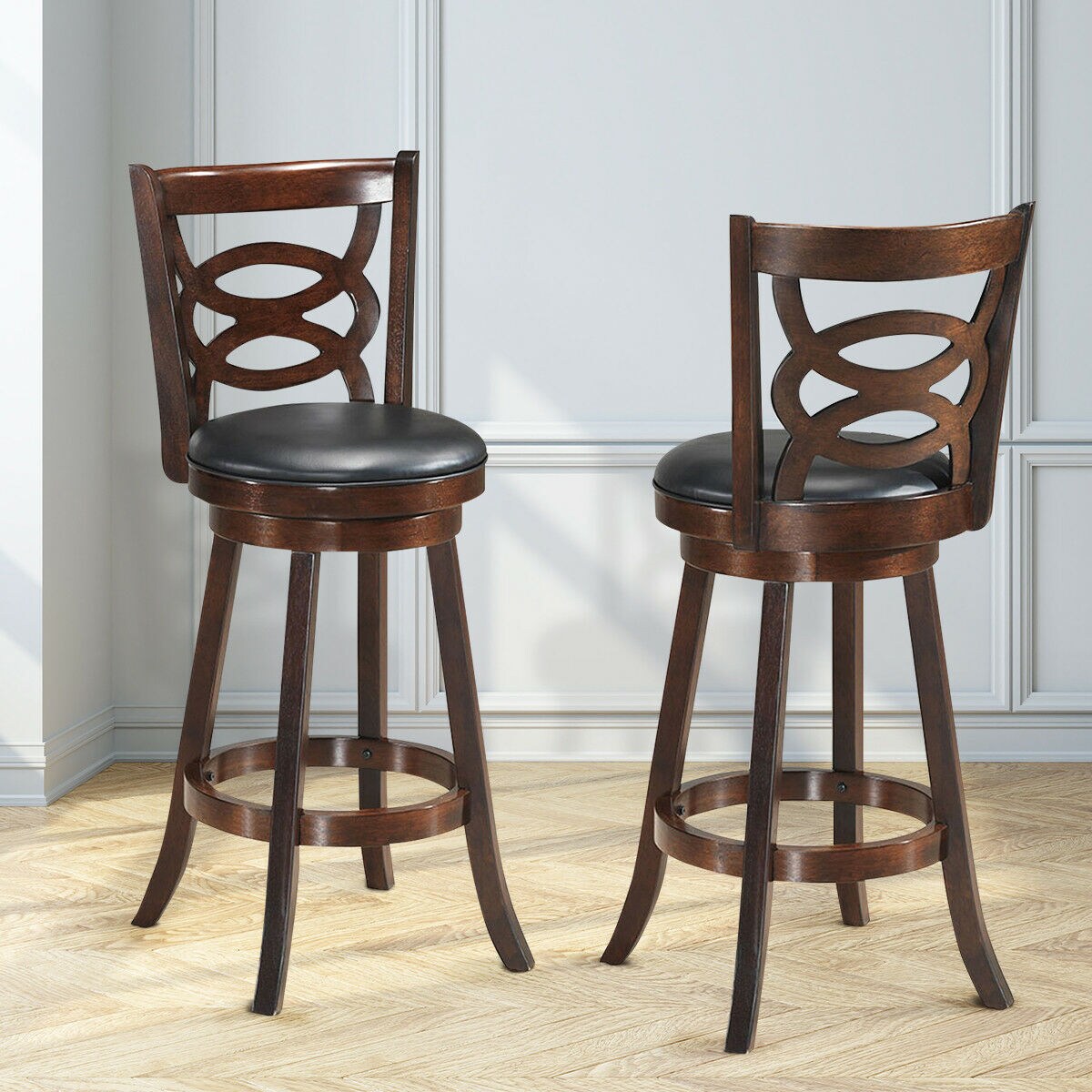 Costway Set of 2 Bar Stools 29'' Height Wooden Swivel Backed Dining Chair Home Kitchen