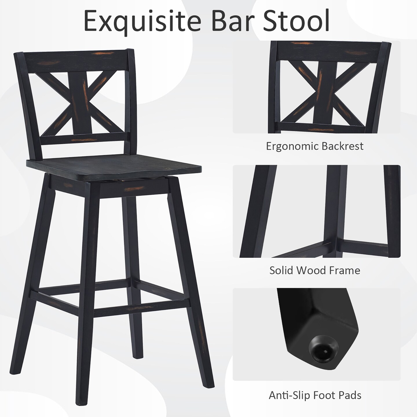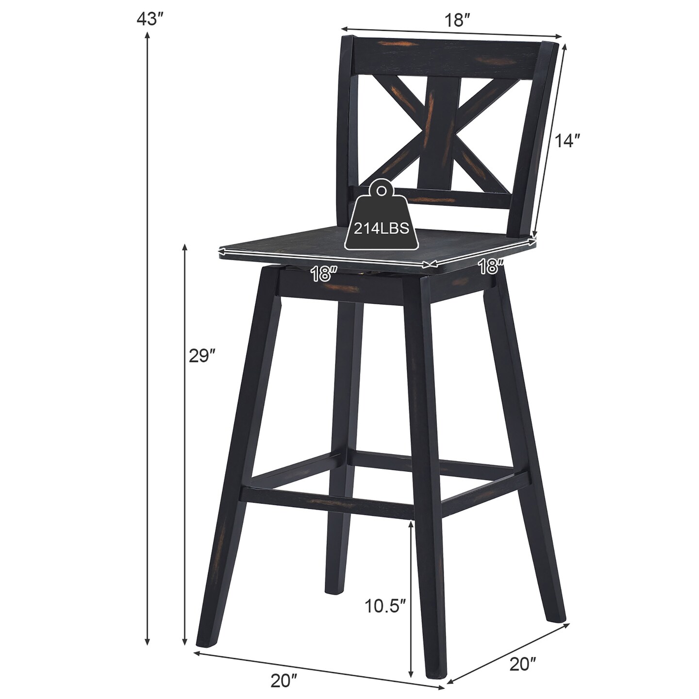Costway Set of 2 Bar Stools Swivel Pub Height Chairs w/ Rubber Wood Legs White\Black