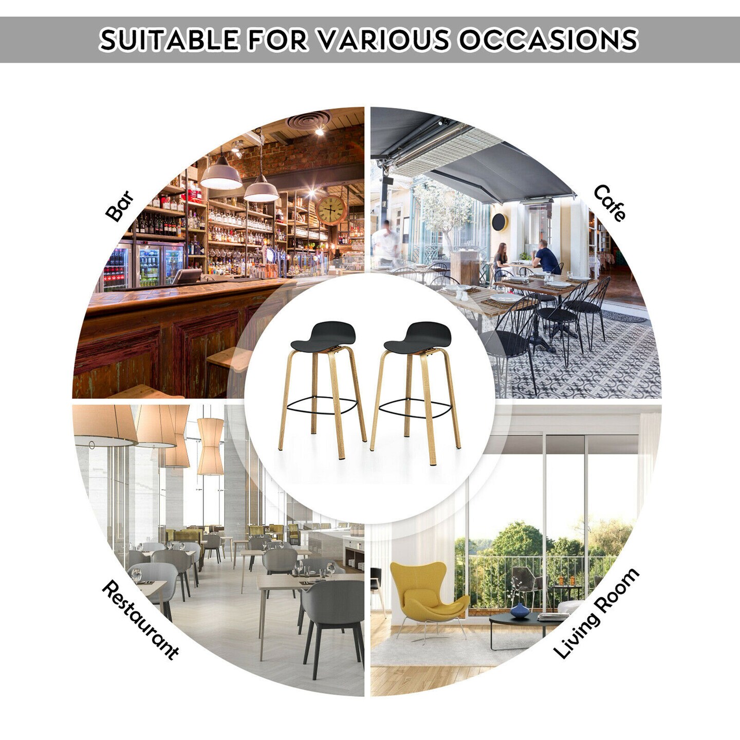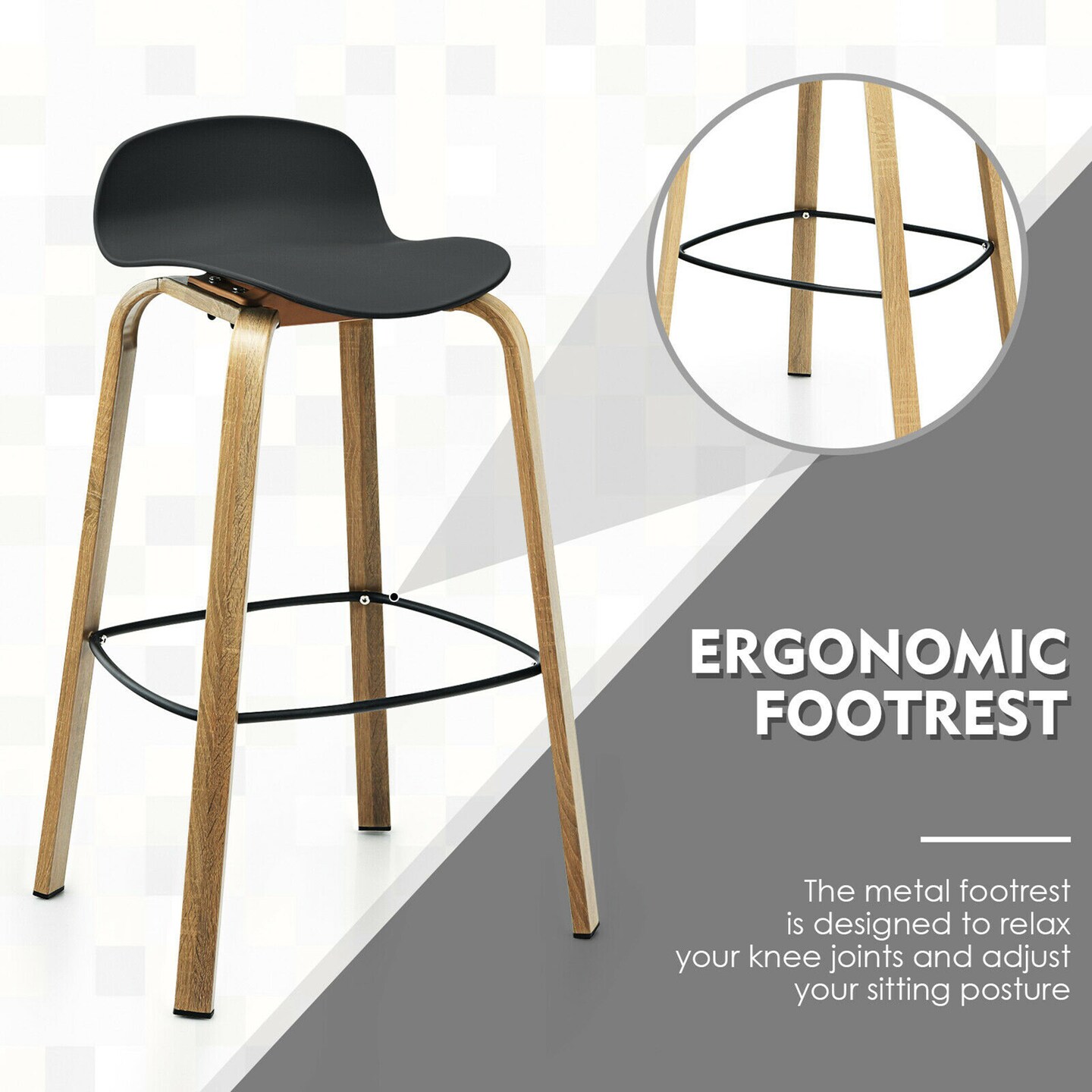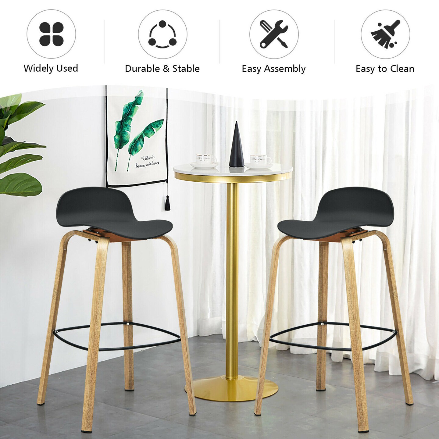 Costway Set of 2 Barstools Modern 30inch Pub Chairs w/Low Back & Metal Legs Black