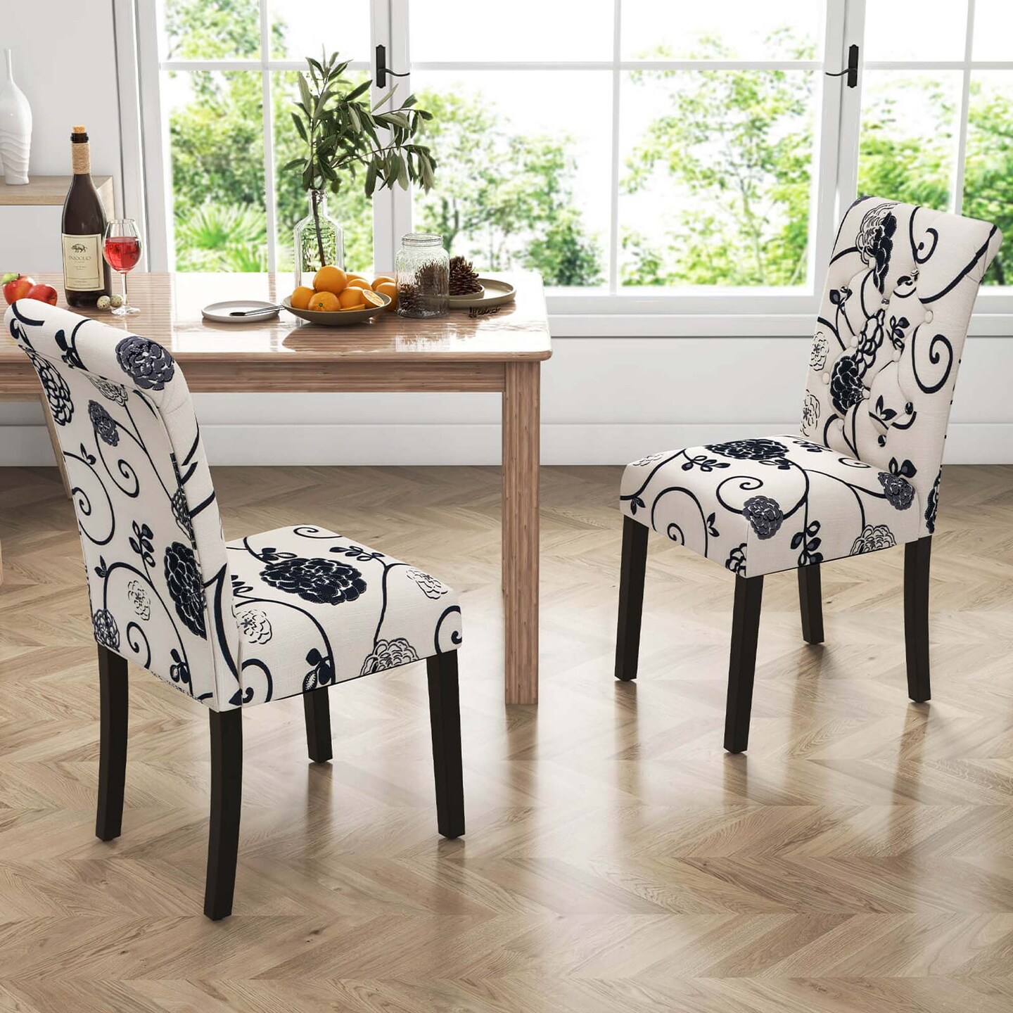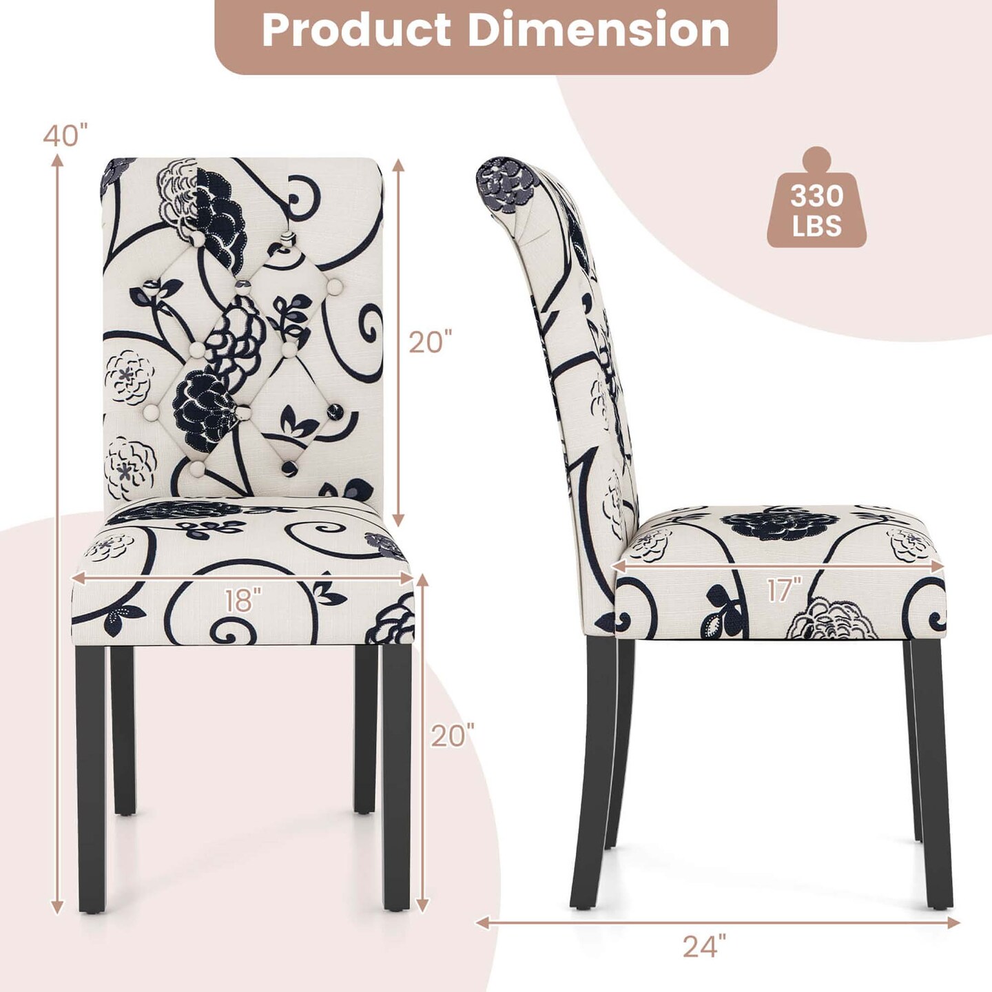 Costway Set of 2 Parsons Upholstered Fabric Chair with Wooden Legs Pink/Beige/Grey/White&Black