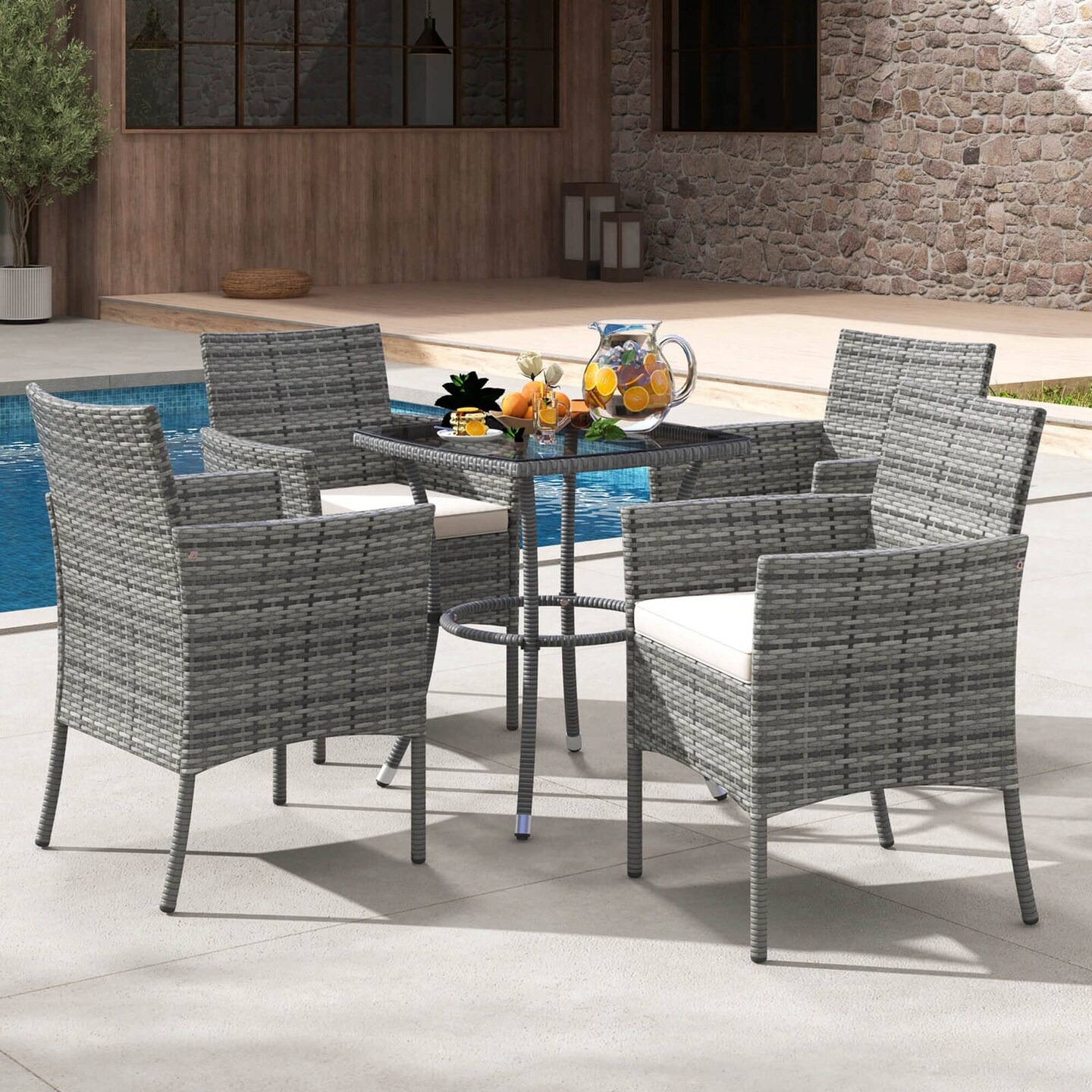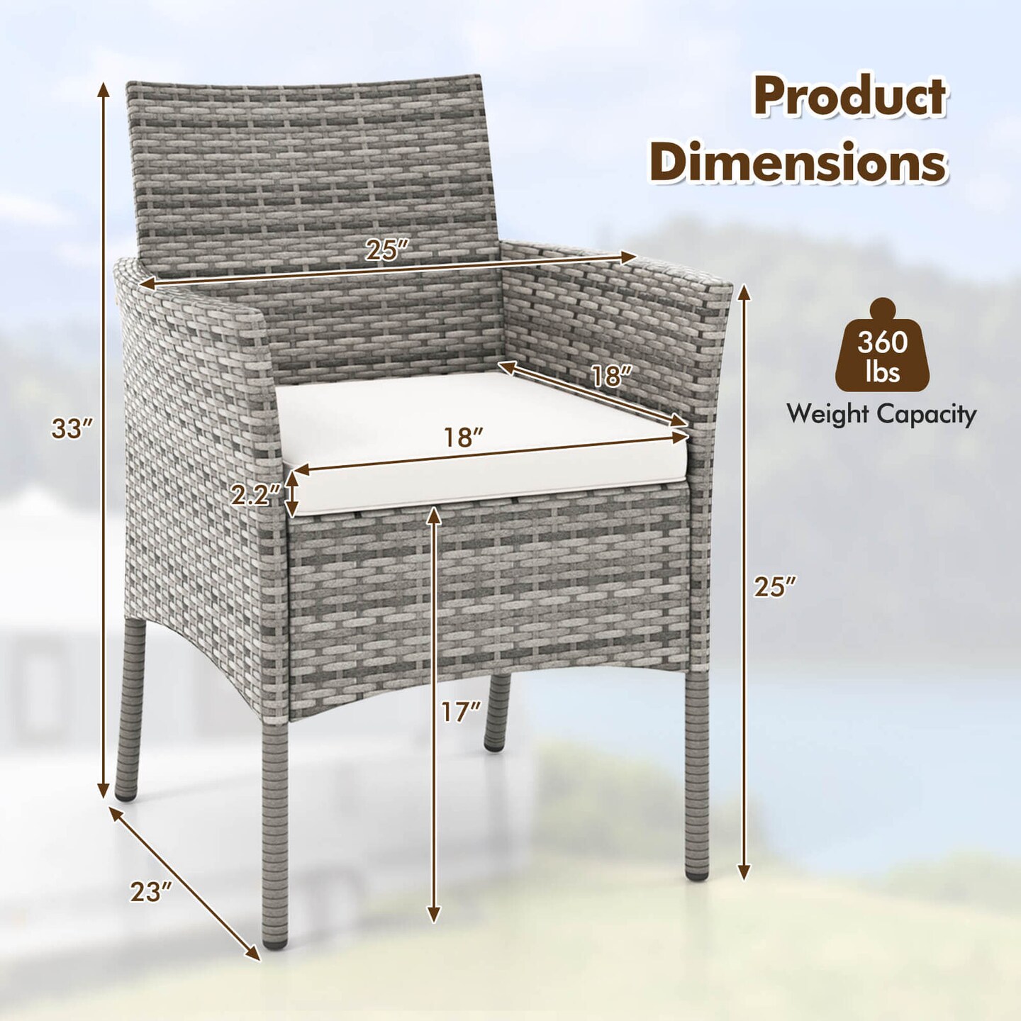 Costway Set of 2 Patio Rattan Arm Dining Chair Cushioned Sofa Furniture White