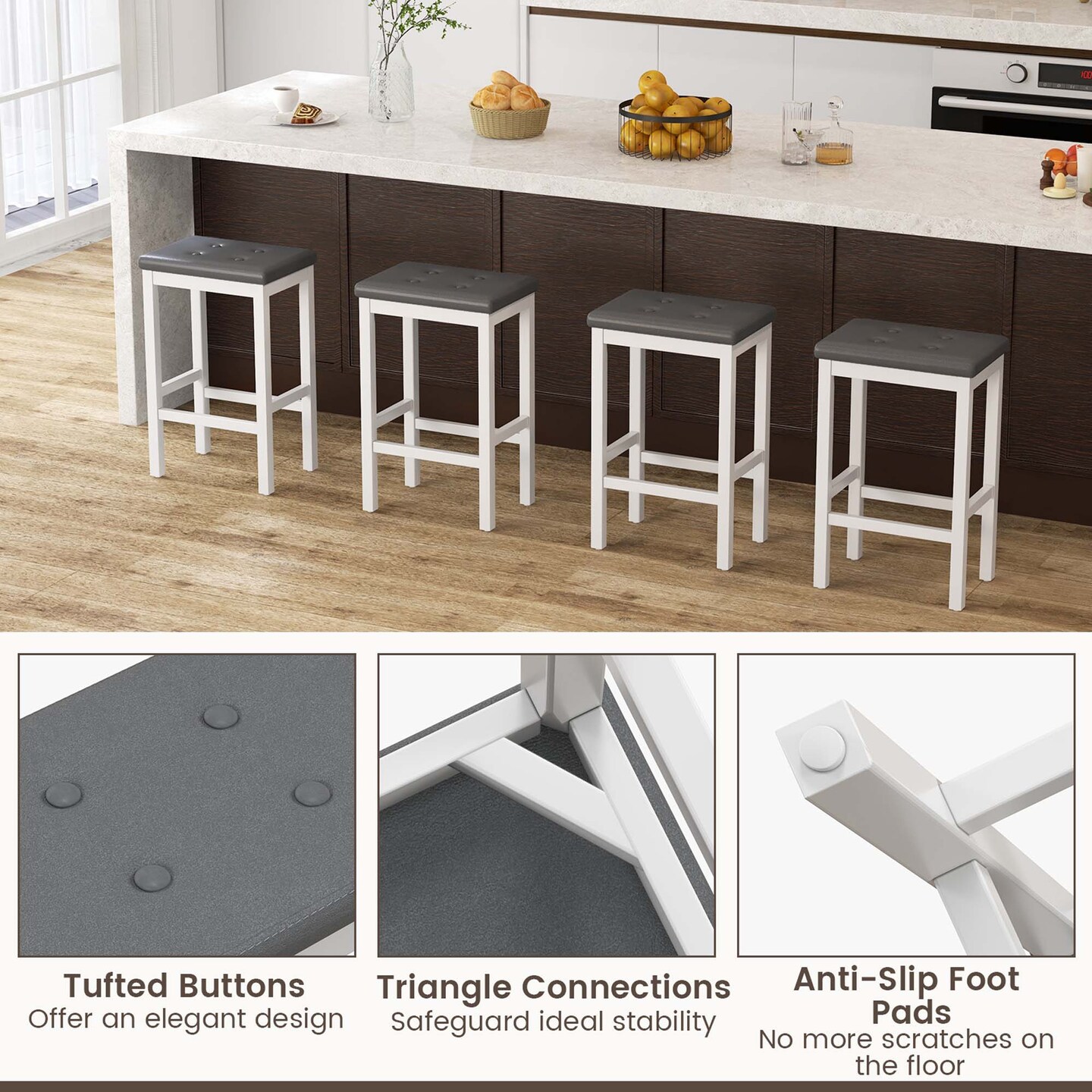 Costway Set of 2 Rubber Wood Bar Stools 24" Counter Height Stool with Padded Seat, Footrest Brown & Black/Gray & White