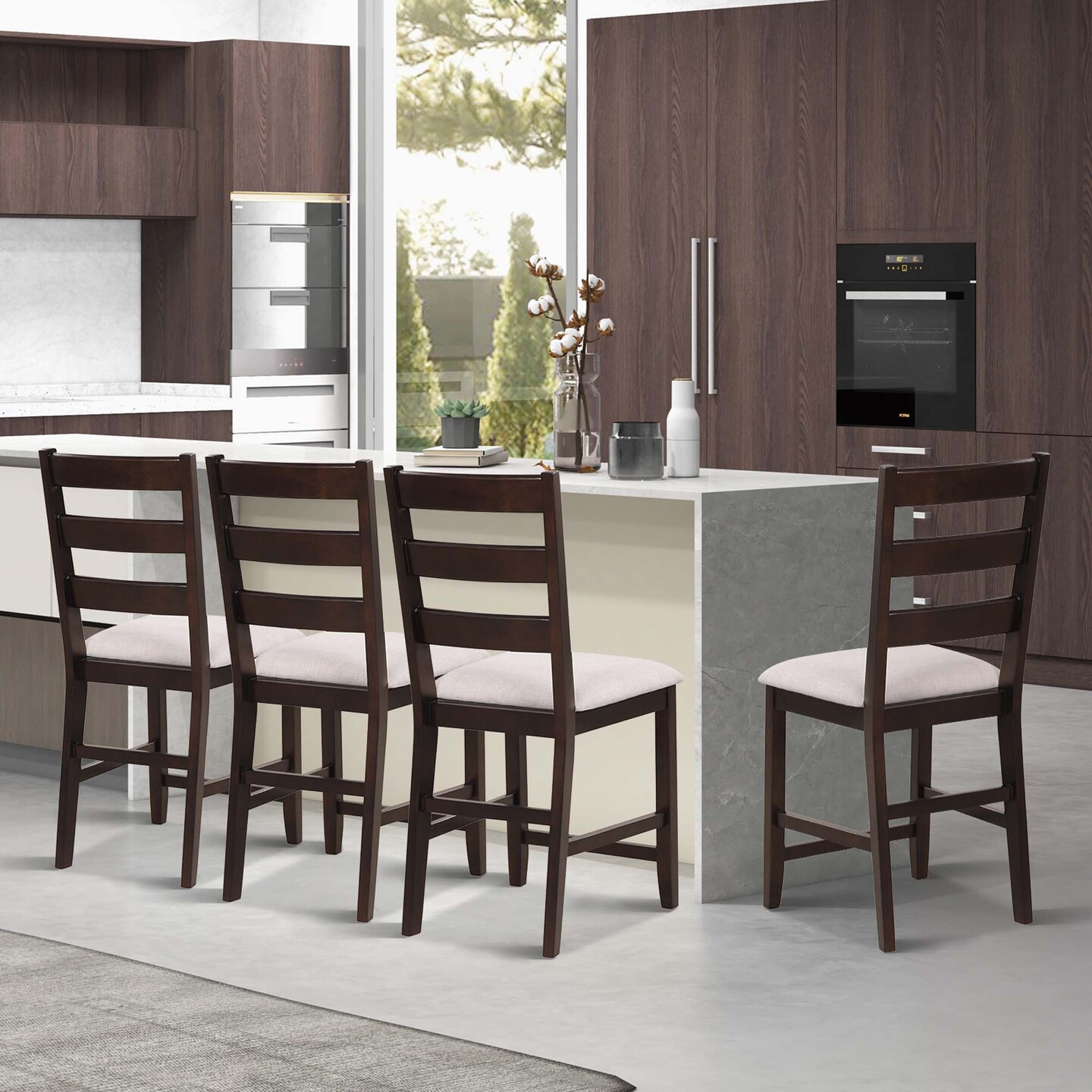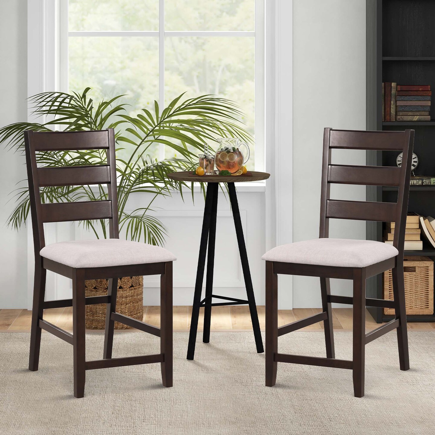 Costway Set of 2 Upholstered Bar Stools 24'' Rubber Wood Dining Chairs with High Back