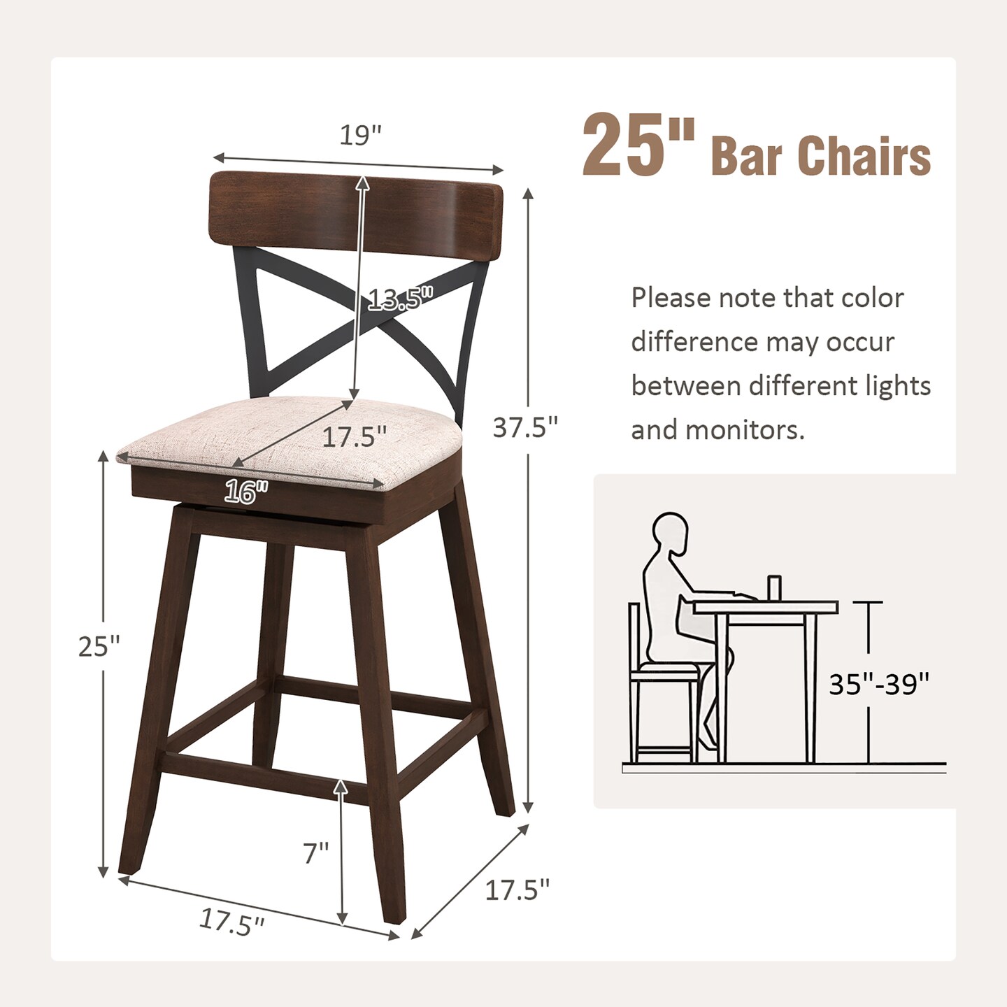 Costway Set of 2 Wooden Swivel Bar Stools Upholstered Counter Height Dining Chairs