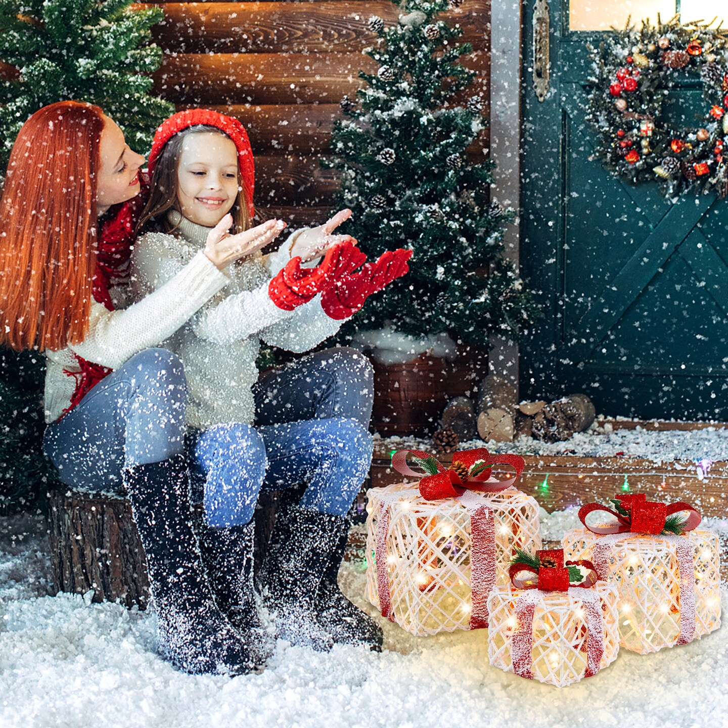 Costway Set of 3 Christmas Lighted Gift Boxes, Indoor Present Box Holiday Decoration
