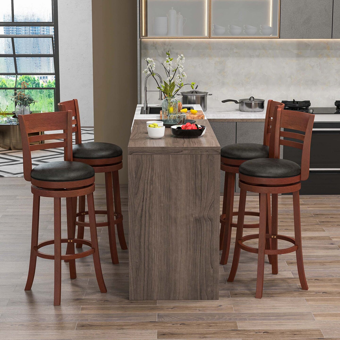Costway Set of 4 Bar Stools Swivel Bar Height Dining Chairs with Backrests & Footrests