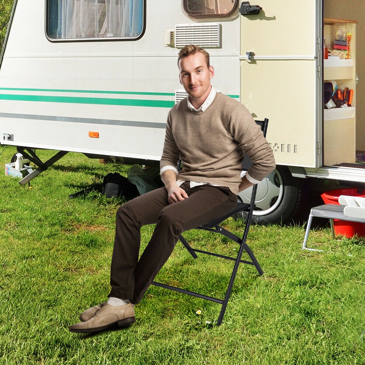 Costway Set of 4 Outdoor Patio Folding Chairs Camping Deck Garden Pool Beach Furniture