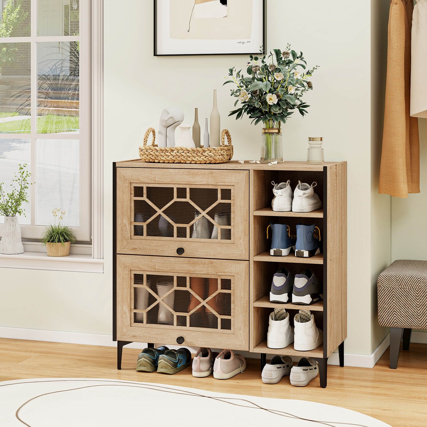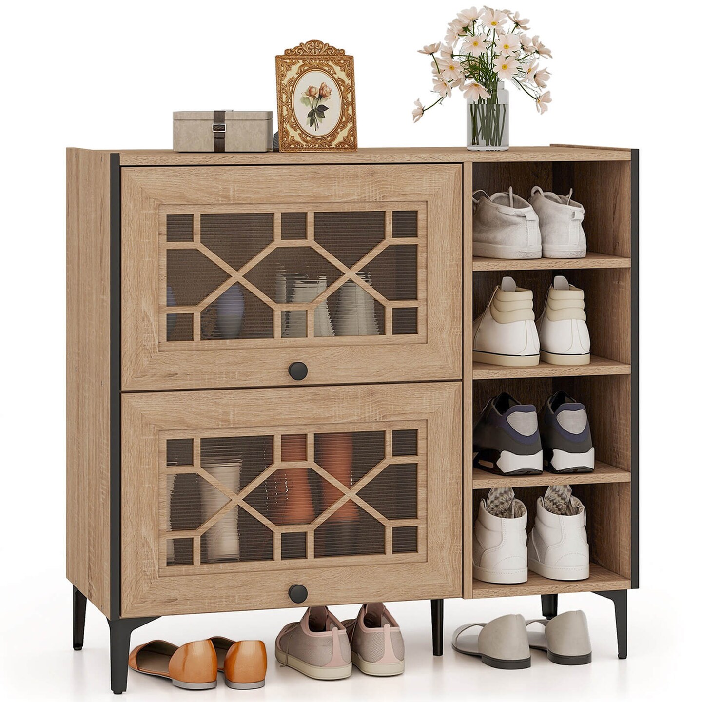 Costway Shoe Storage Cabinet with Flip Doors Adjustable and Removable Shelves for Entryway