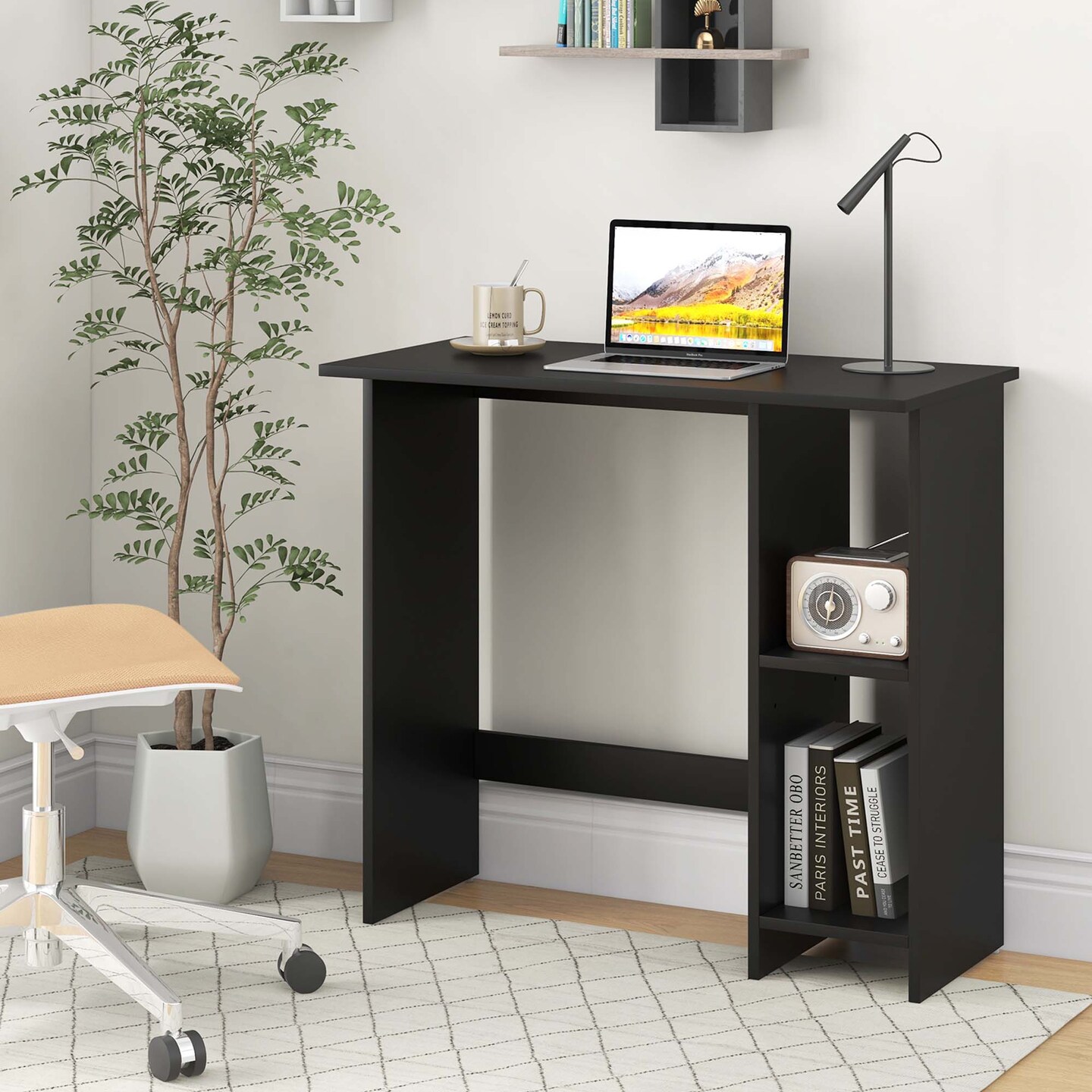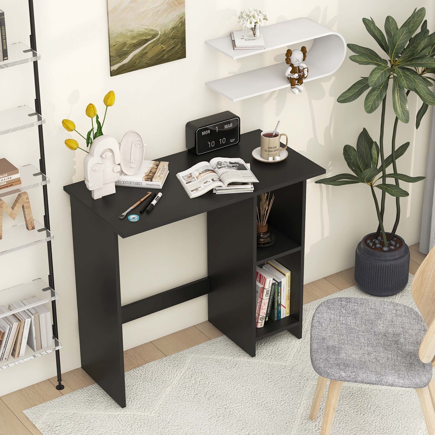 Costway Small Computer Desk with Storage Modern Writing Desk with Adjustable Shelf White/Black
