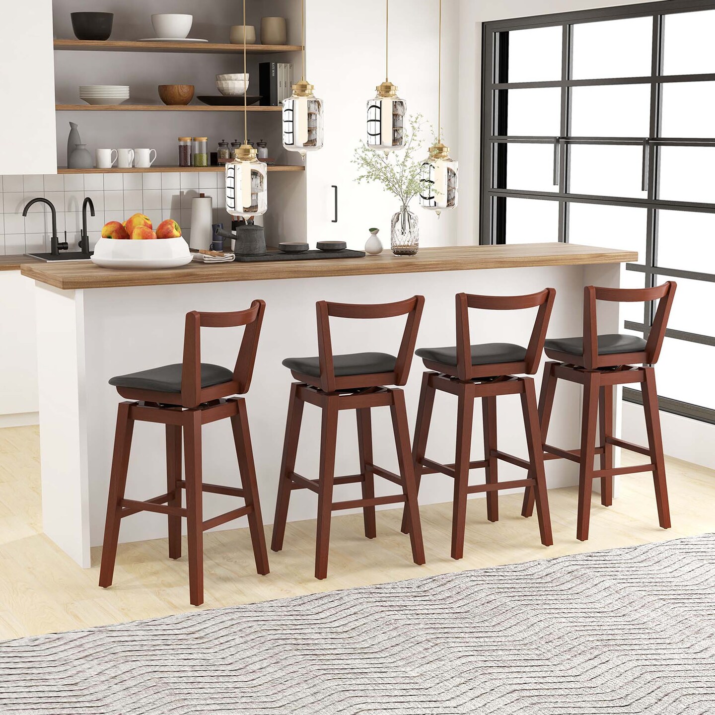 Costway Swivel Counter Height Bar Stool 26'' Upholstered PU Leather Hollow Backrest