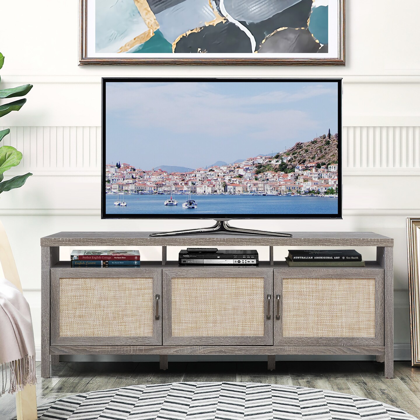 Costway TV Stand Entertainment Media Center for TV's up to 65'' w/ Rattan Doors