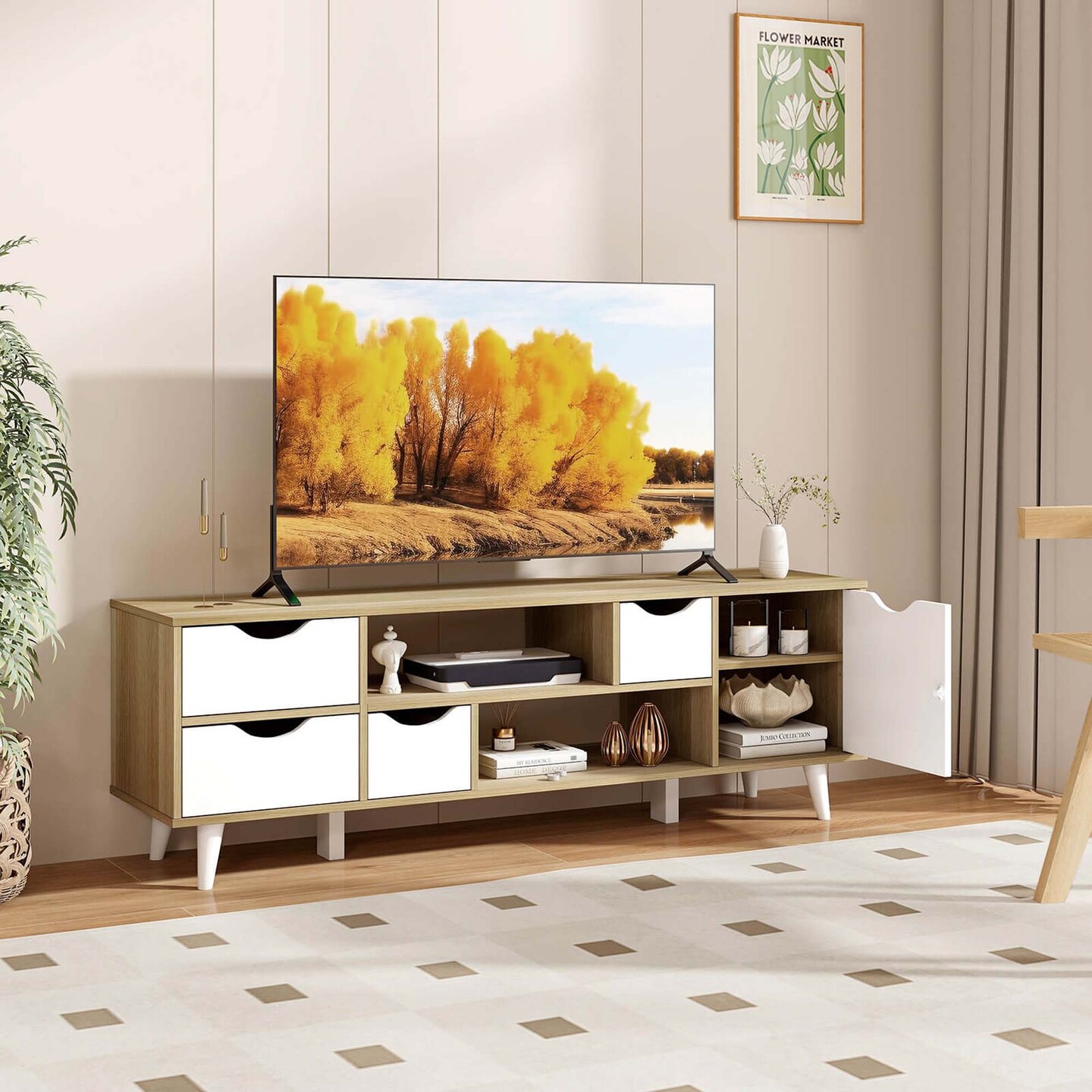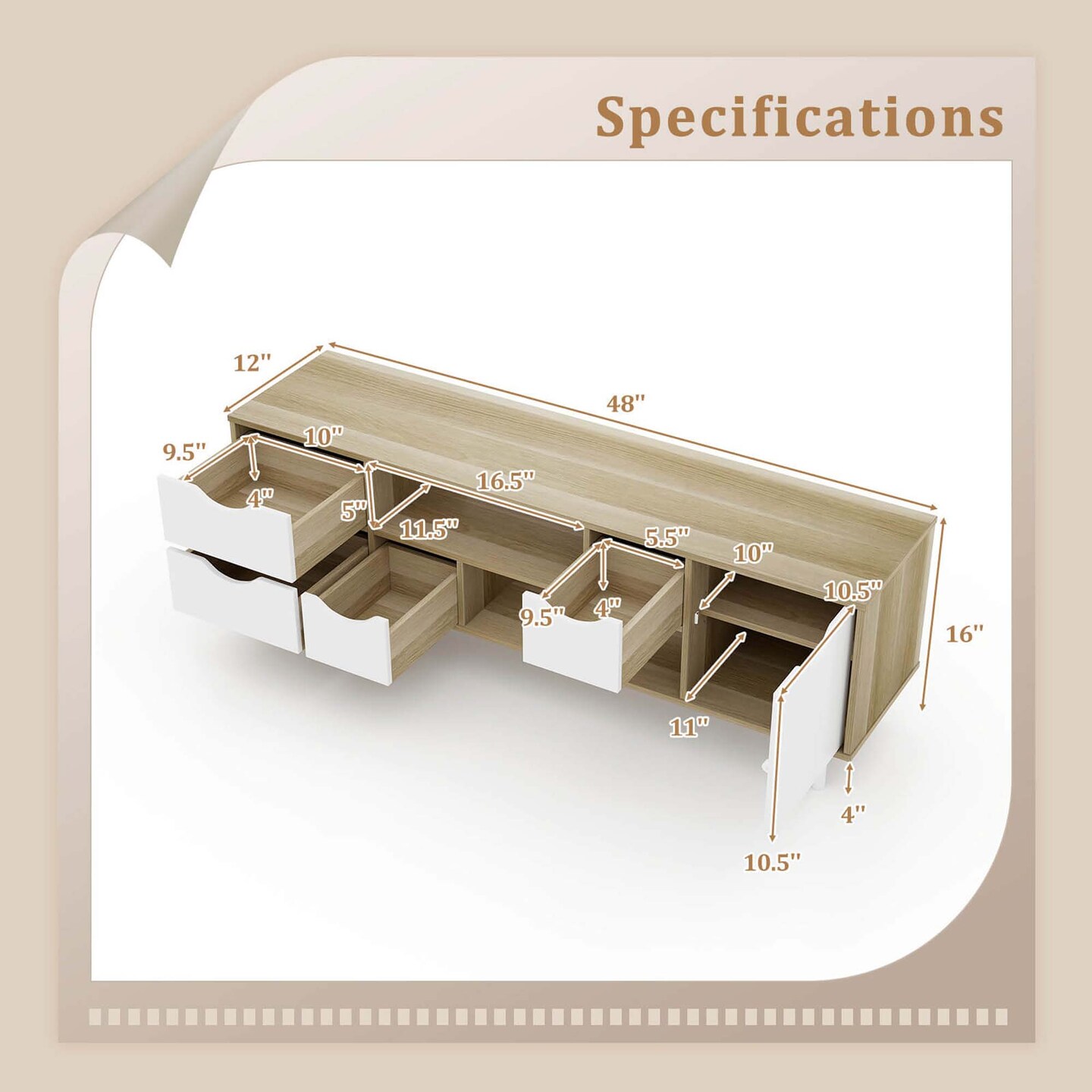 Costway TV Stand for TVs up to 55" with Storage 4 Drawers & 2 Open Shelves for Bedroom