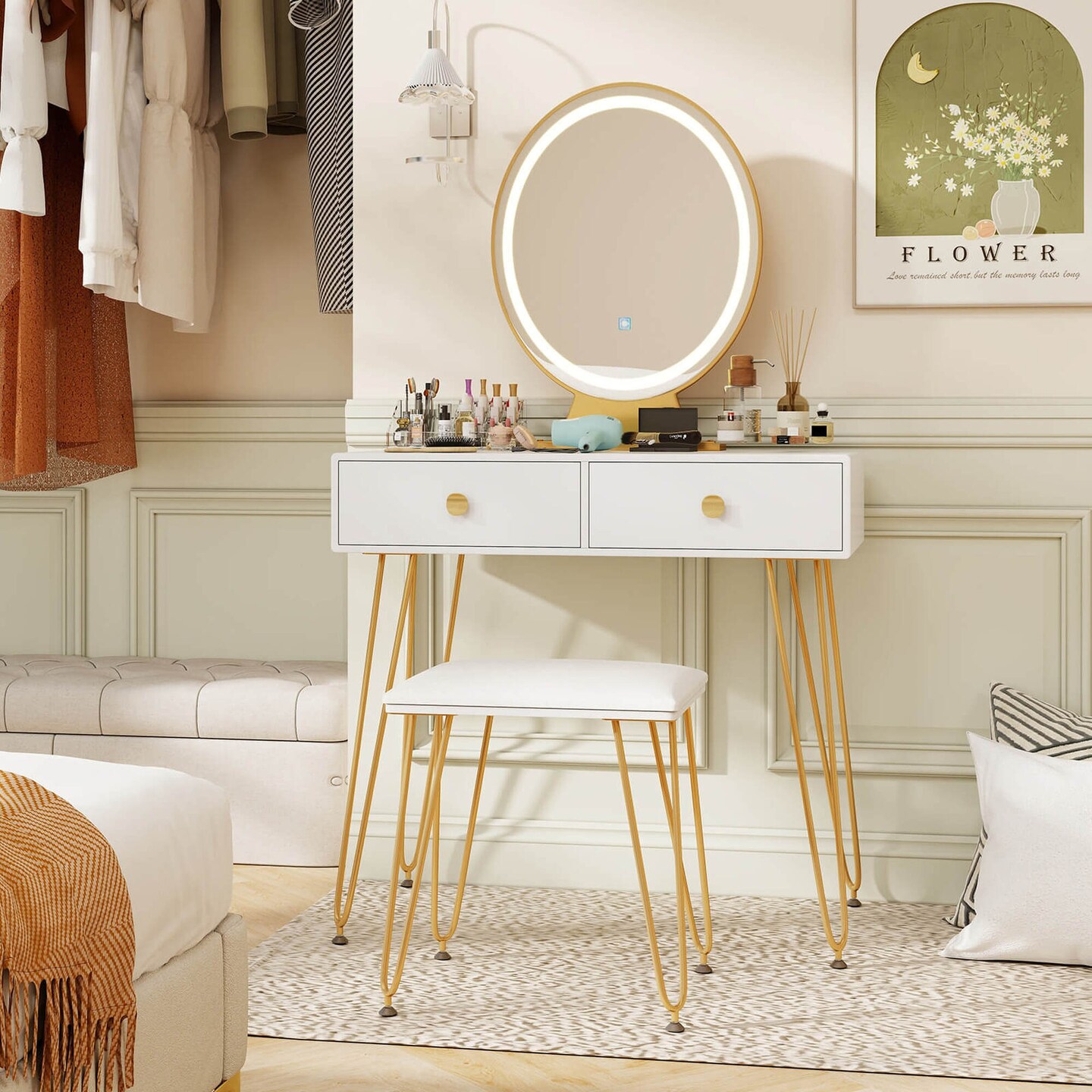 Costway Vanity Makeup Dressing Table W/ 3 Lighting Modes Mirror Touch Switch White