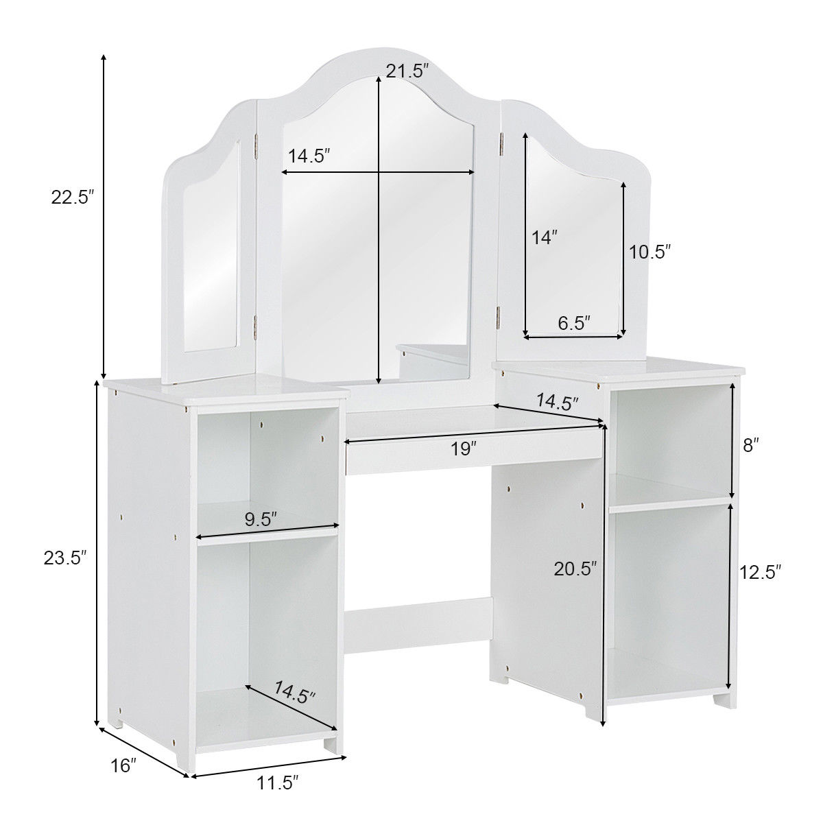Costway Vanity Table Set Makeup Dressing Kids Girls Study Table Tri Folding Mirror WhitePink