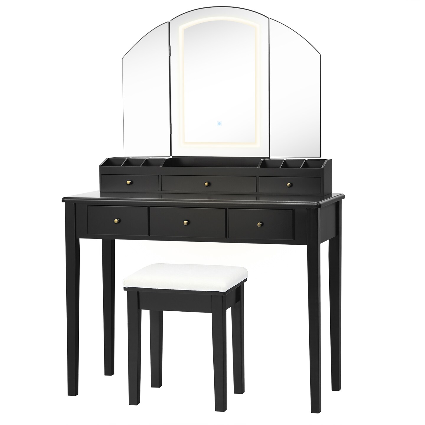Costway Vanity Table Stool Set Large Tri-folding Lighted Mirror 6 Drawer Dresser White\Black
