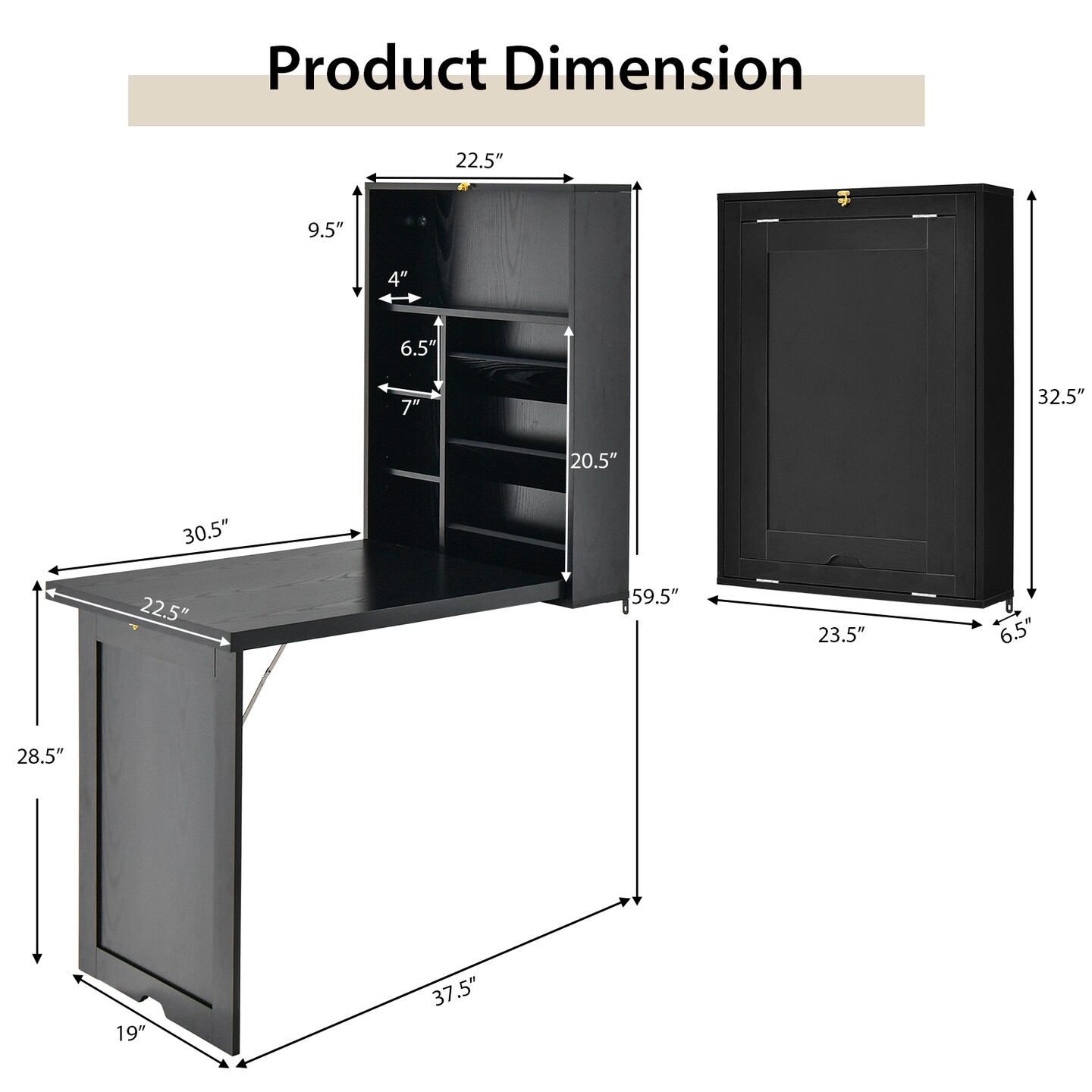 Costway Wall Mounted Computer Convertible Desk Floating Desk w/ Storage Bookcases