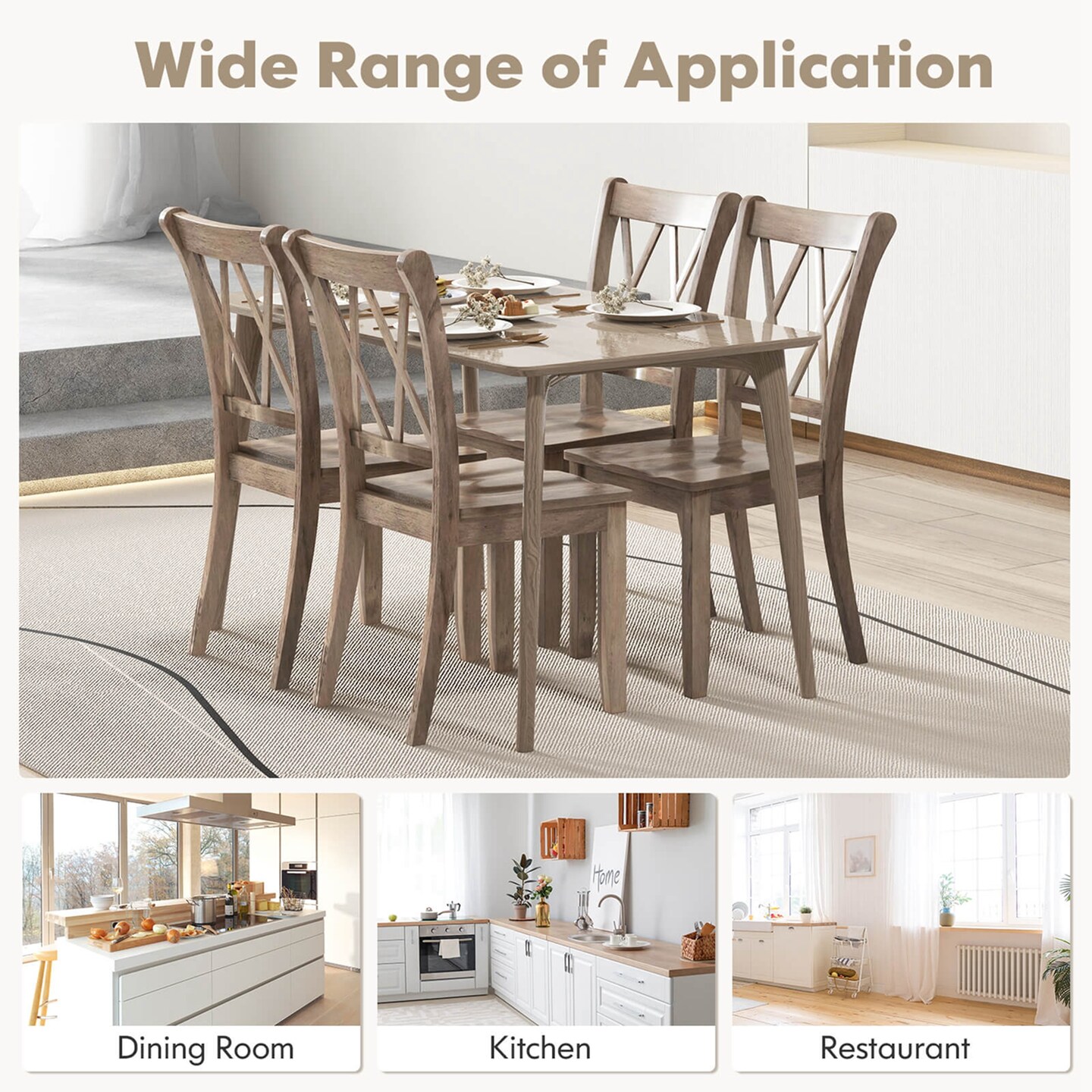 Costway Wooden Dining Chairs Set of 2/4 with Ergonomic Seat Rubber Wood Frame & High Backrest