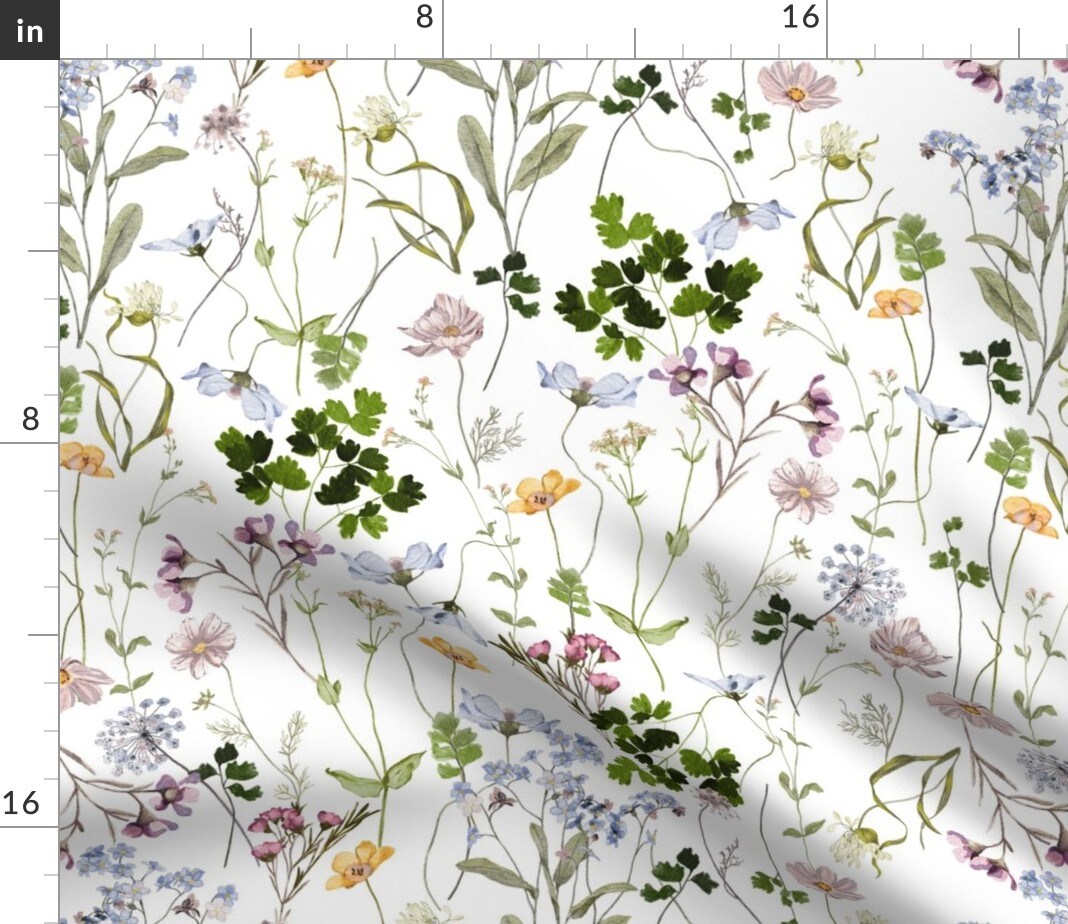 Cottagecore Botanical Garden Hand Painted Watercolor Floral Summer Spring Custom Printed Fabric by Spoonflower Various Fabrics by the Yard or Fat Quarter