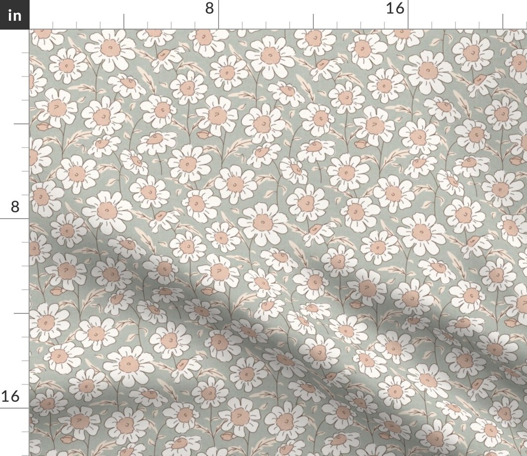 Cottagecore Modern Farmhouse Nursery Bohemian Floral Flowers Daisy Wildflowers Cottage Meadow Garden Baby Girl Hand Drawn Sketched Rustic Custom Printed Fabric by Spoonflower Various Fabrics by the Yard or Fat Quarter