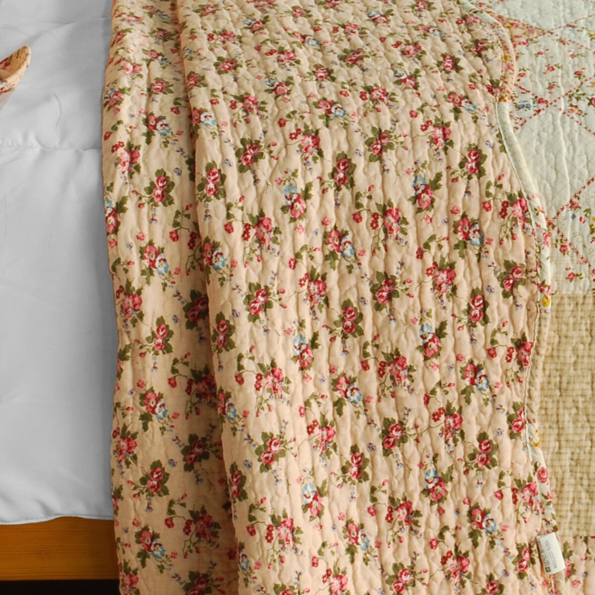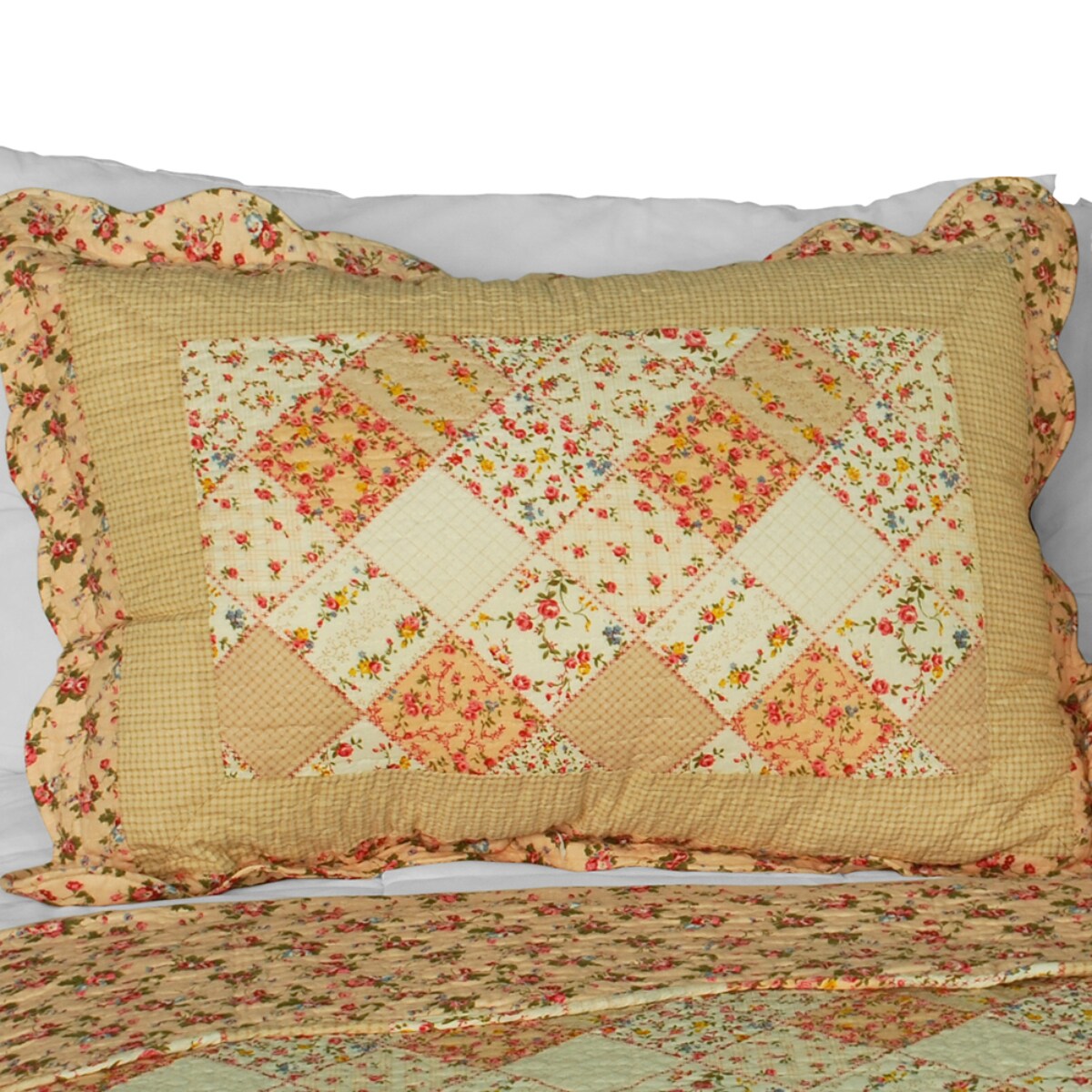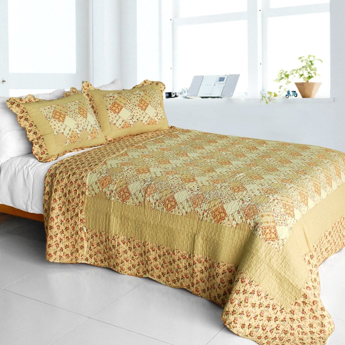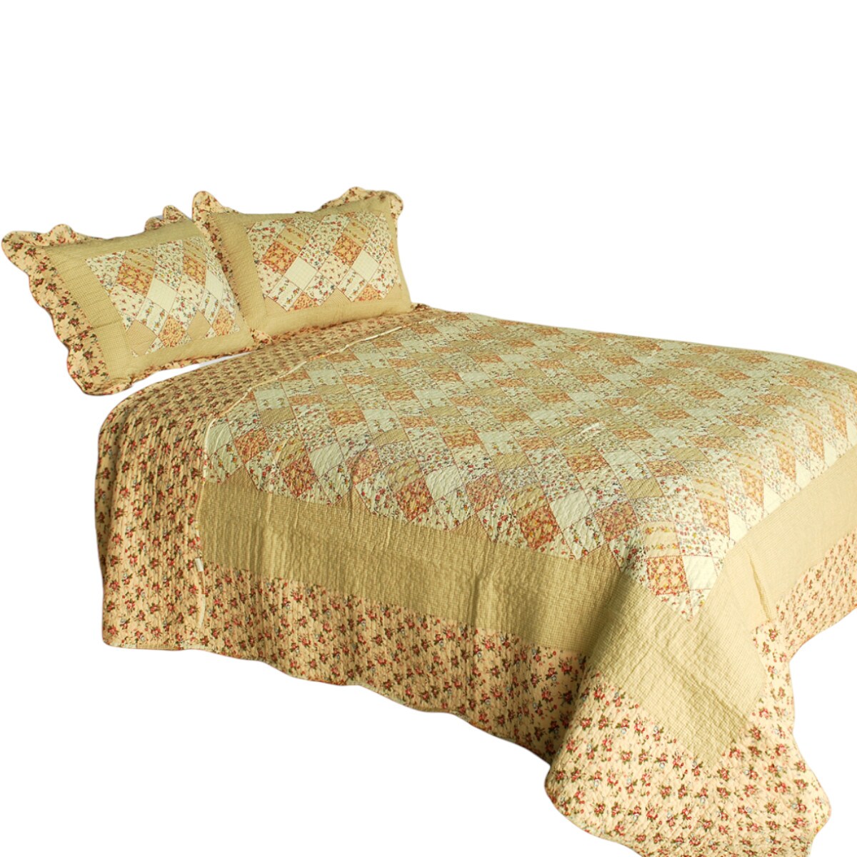 Cotton Floral Patchwork 3-Pc Quilt Set Full/Queen Vermicelli