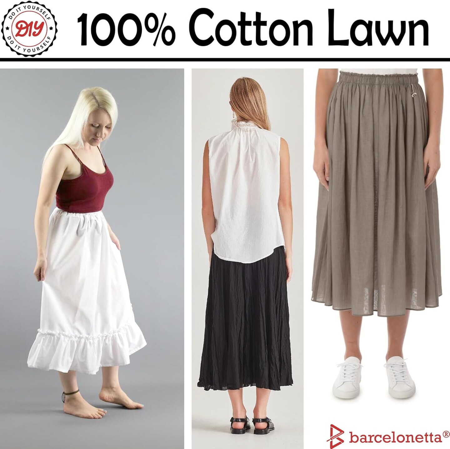 Cotton Lawn Fabric Lining Fabric 100% Cotton Thin 58" Wide Sewing (White, 2 Yard)