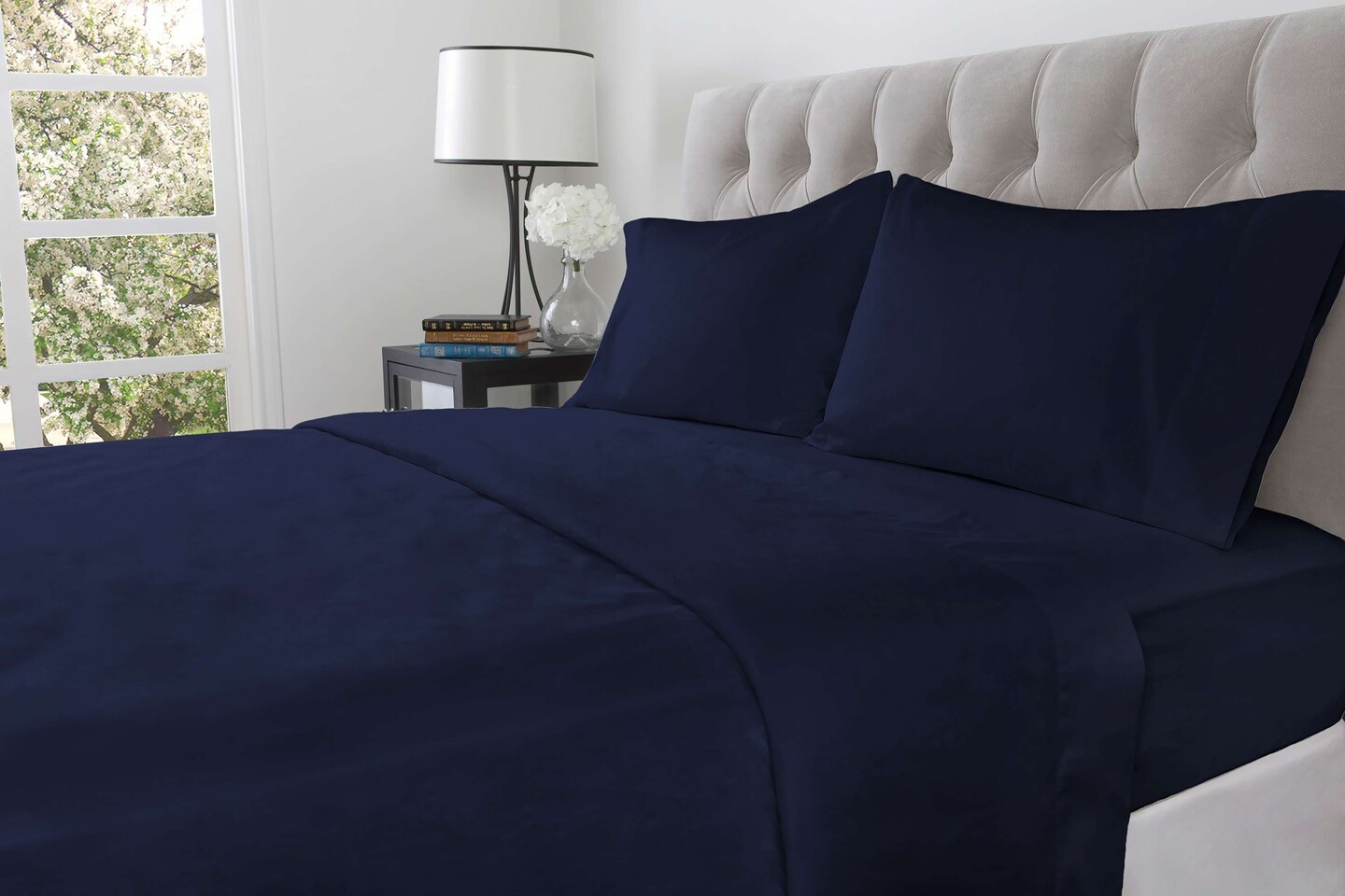 Cotton Rich 144 Thread Count Bed Sheet Set – Dark Denim, Twin/Full/Queen/King (3 & 4 Piece Options)