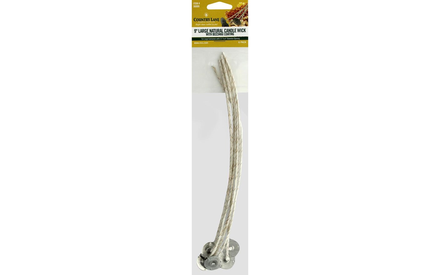 Country Lane Natural Wick 9" Beeswax Lg 20Mm Tab