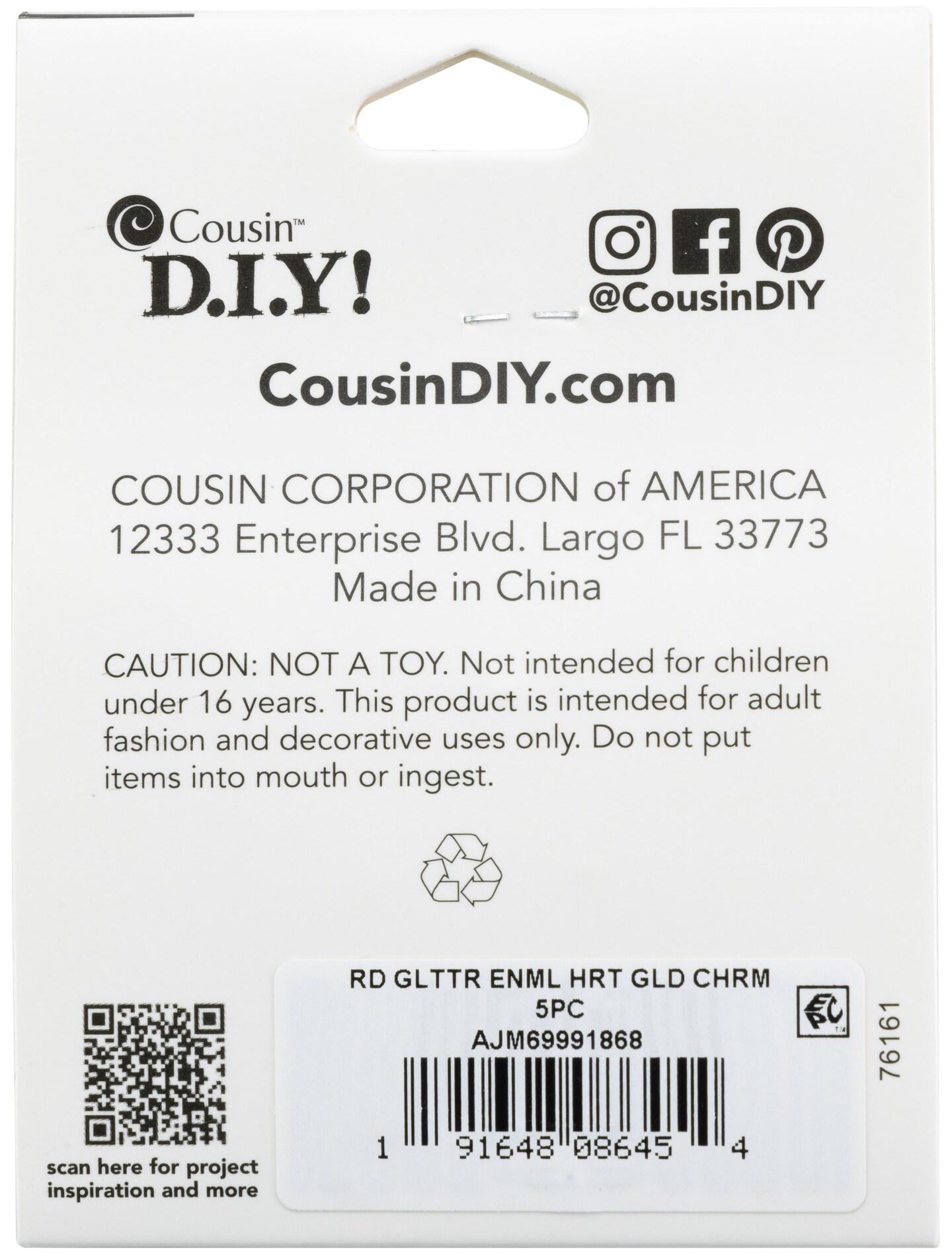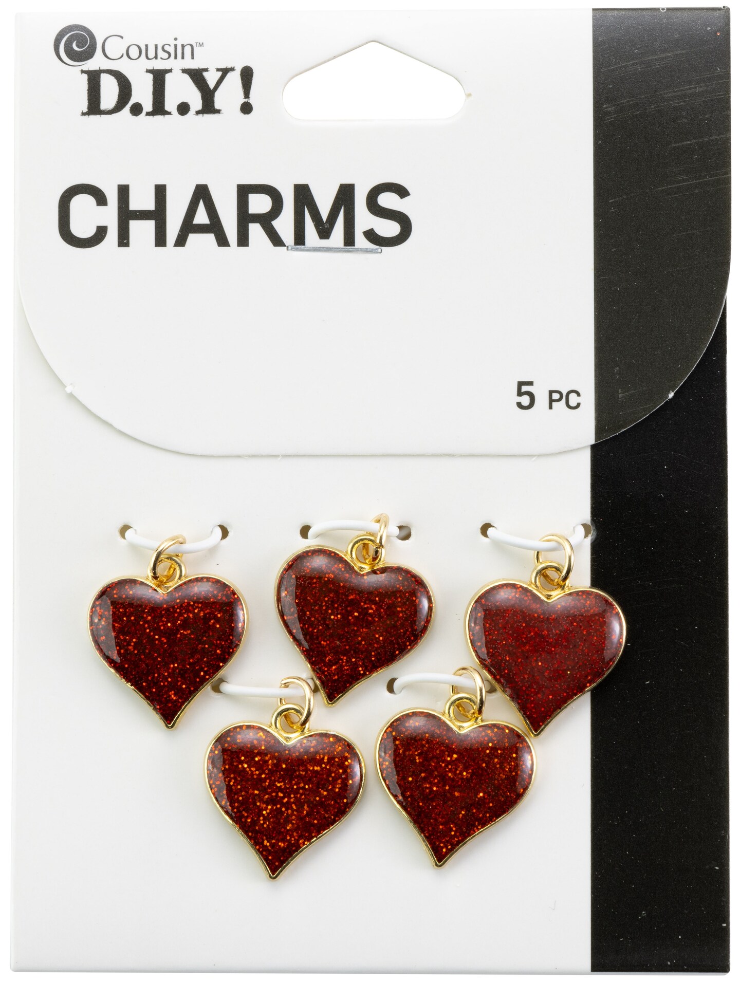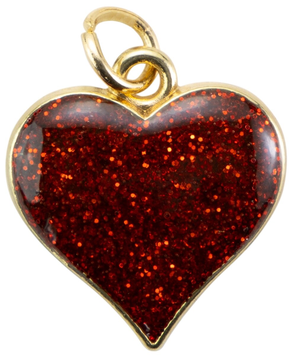 Cousin DIY Gold Metal Finish Heart Charm Set 5/Pkg-Red Glitter