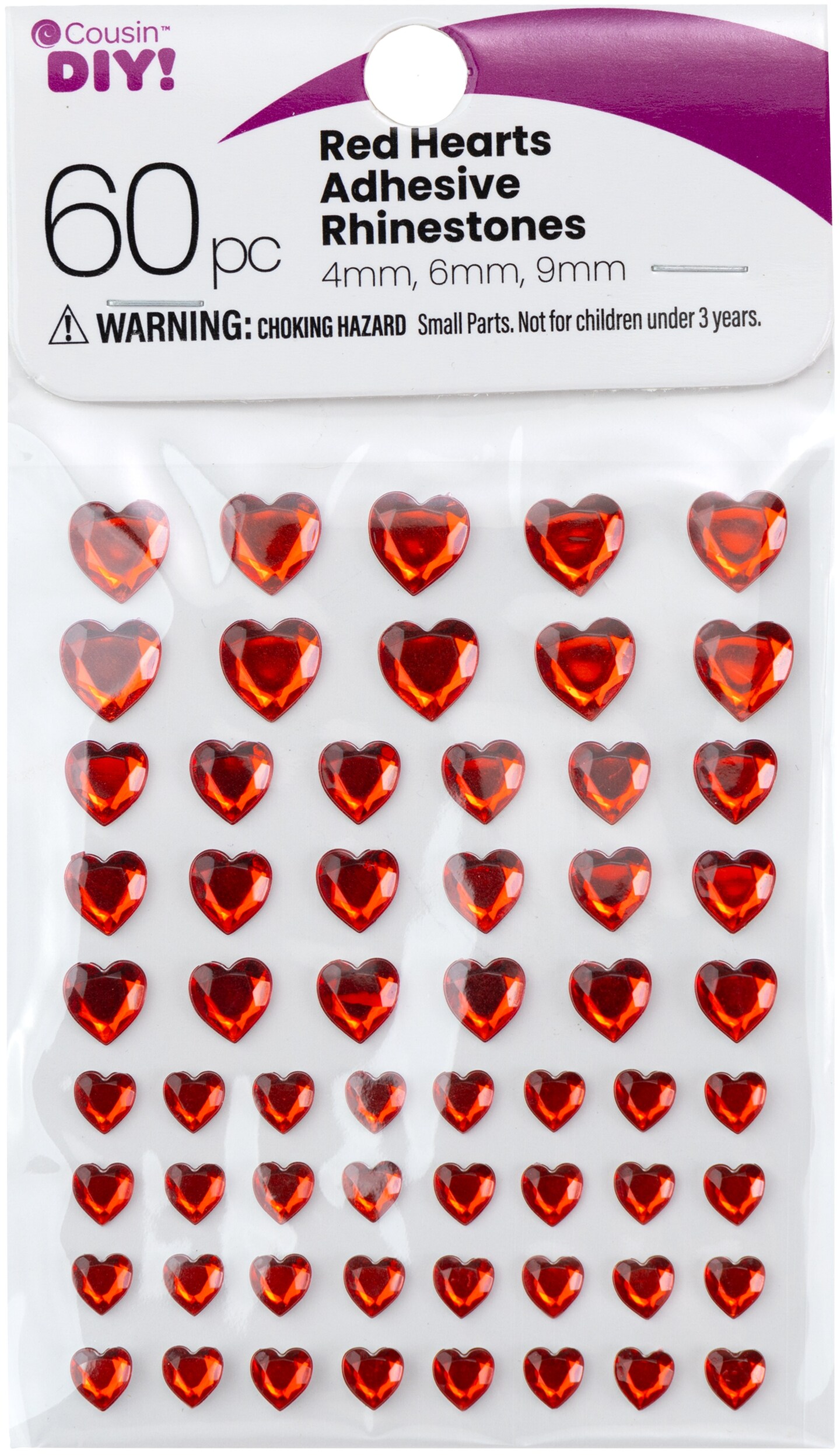 CousinDIY Adhesive Rhinestones 60/Pkg-Red Heart