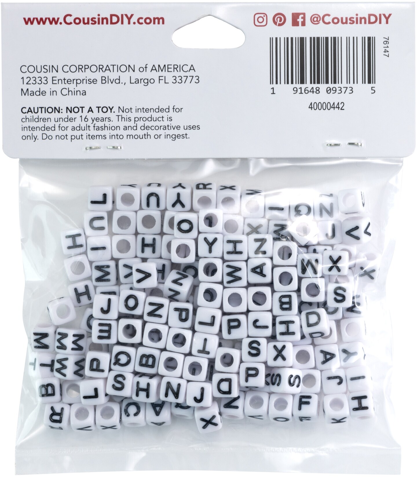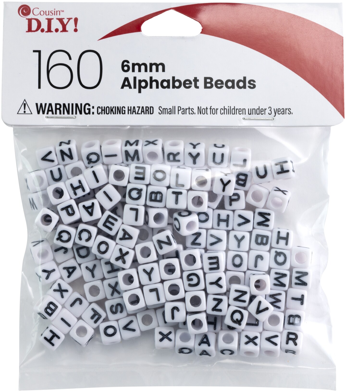 CousinDIY Alphabet Beads 6mm 160/Pkg-White With Black Letters