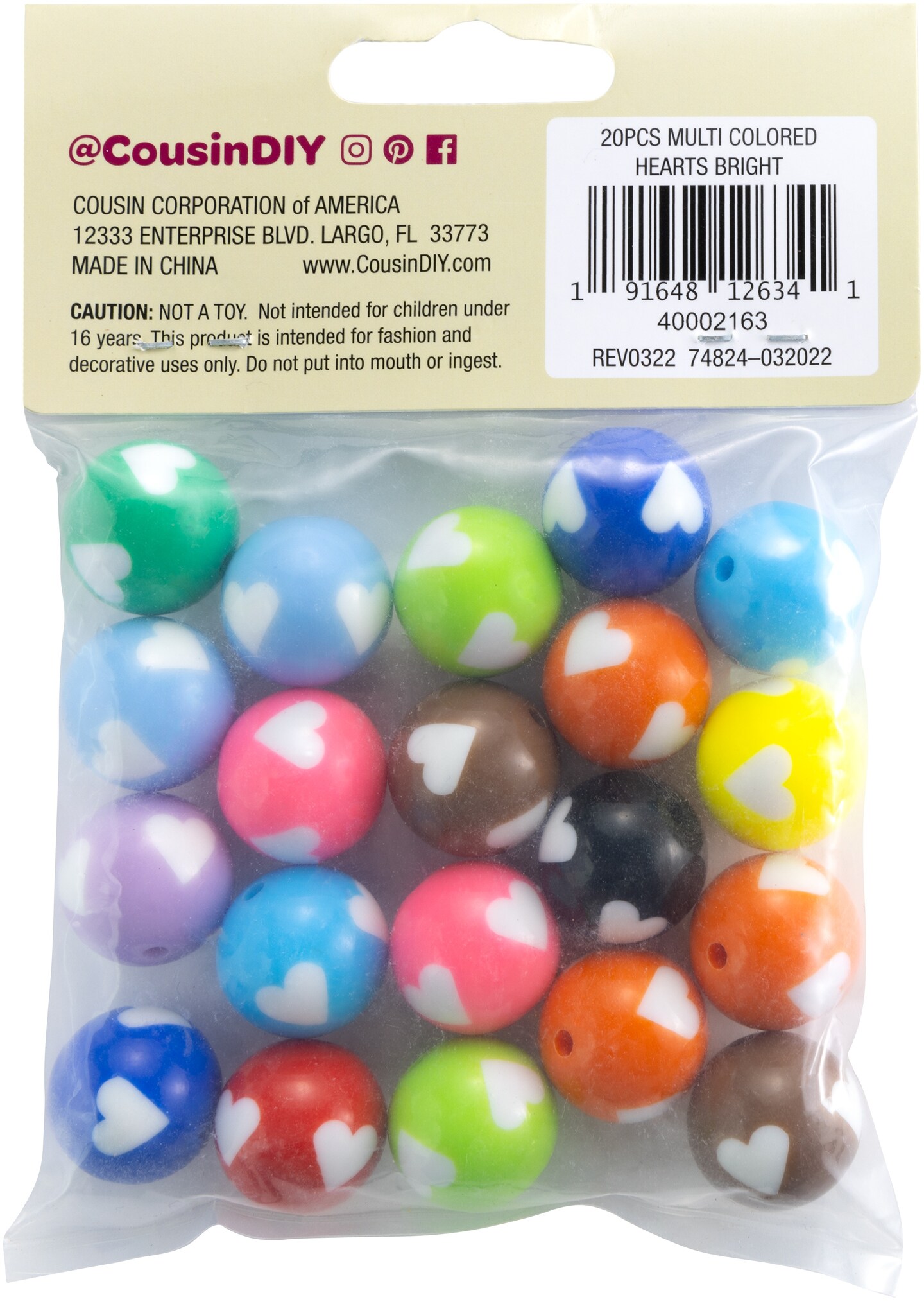 CousinDIY Bubblegum Bead 20mm 20/Pkg-Bright Hearts