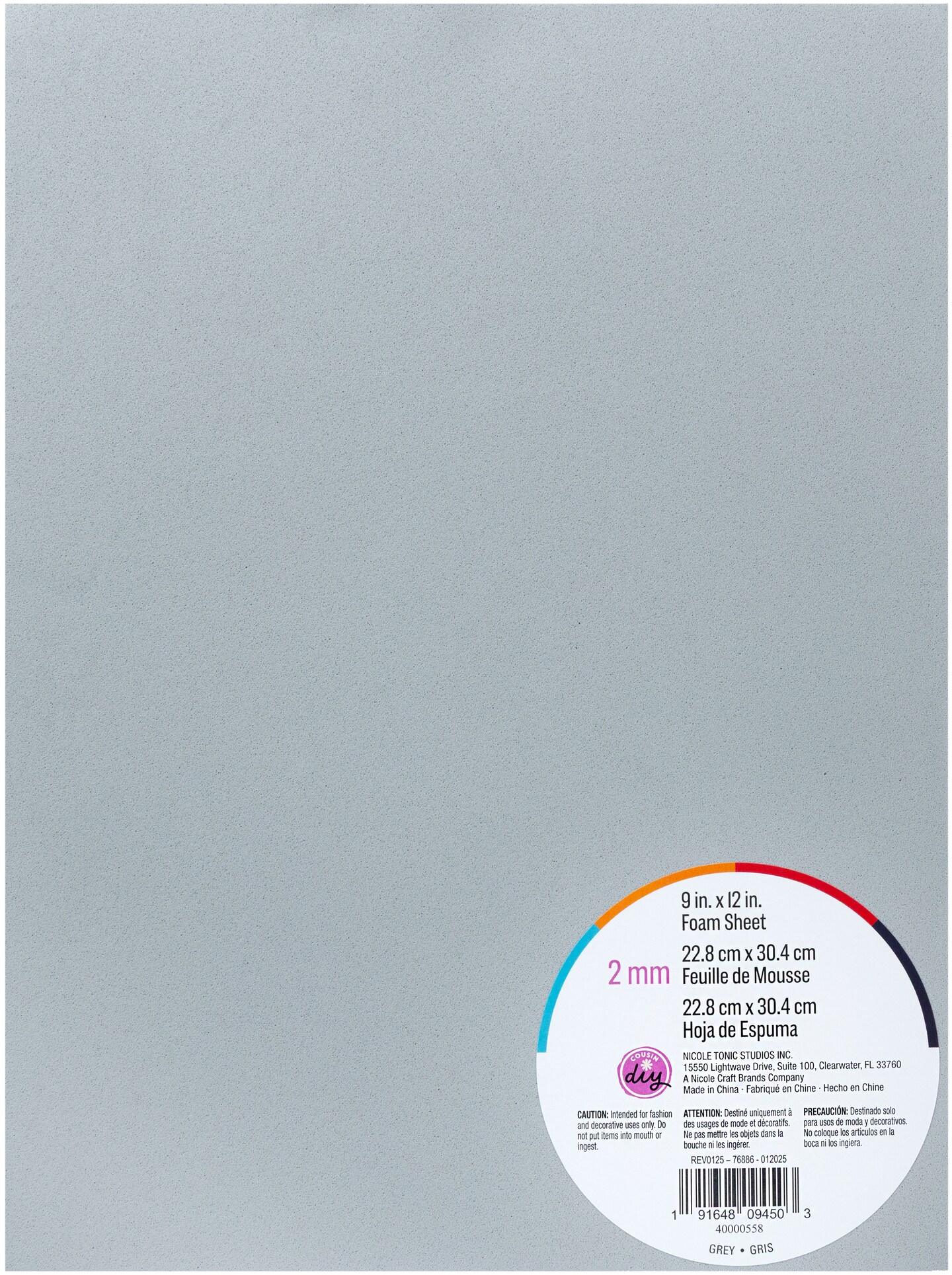 CousinDIY Foam Sheet 9"X12" 2mm-Grey