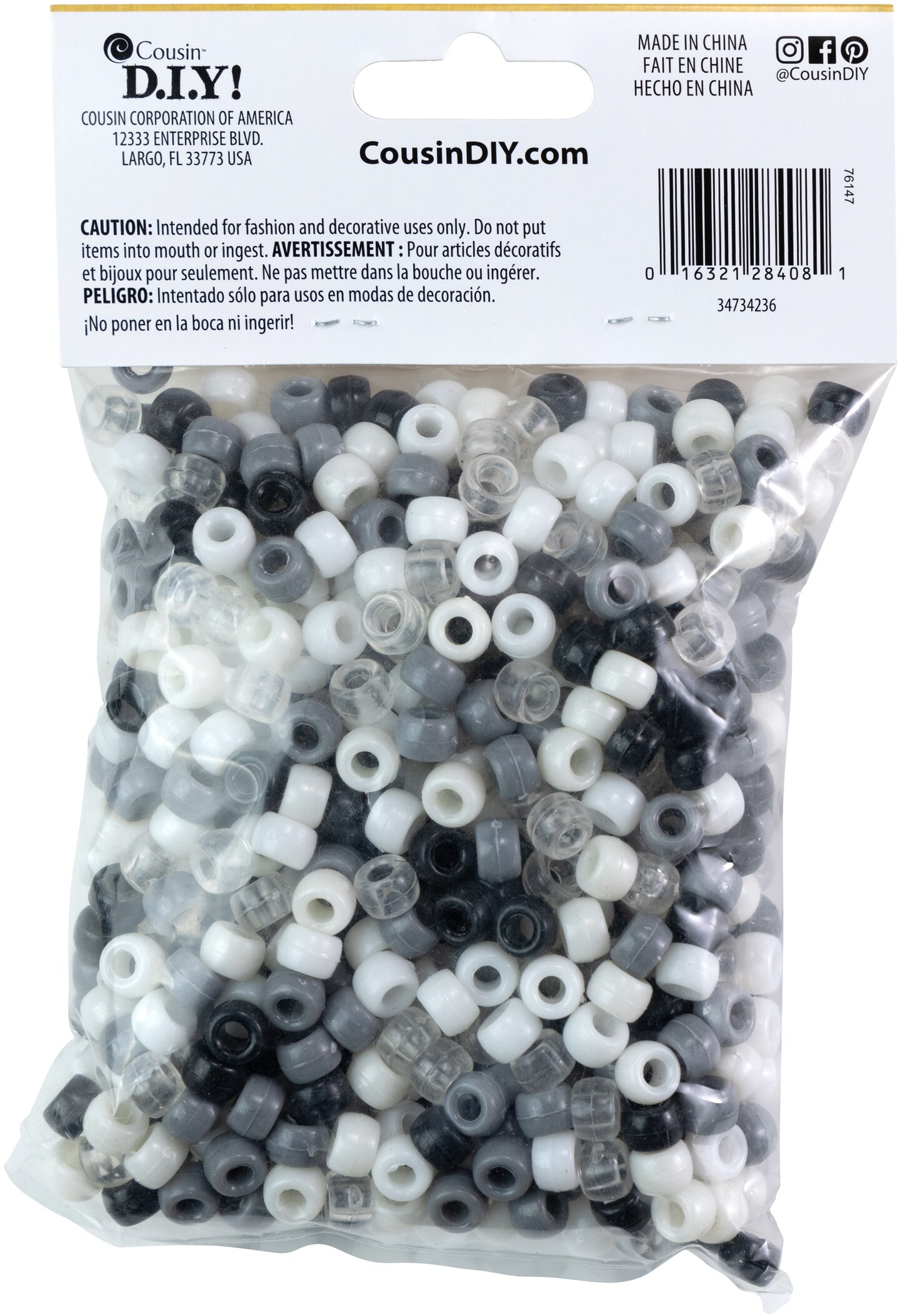 CousinDIY Fun Pack Acrylic Pony Beads 700/Pkg-Monochrome