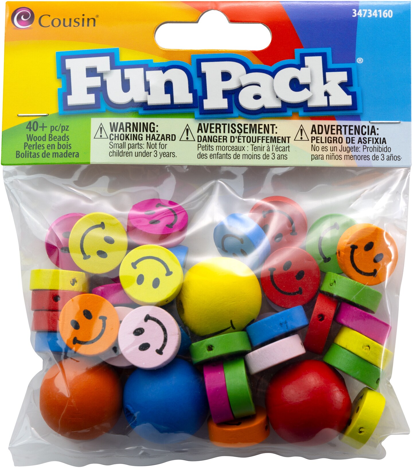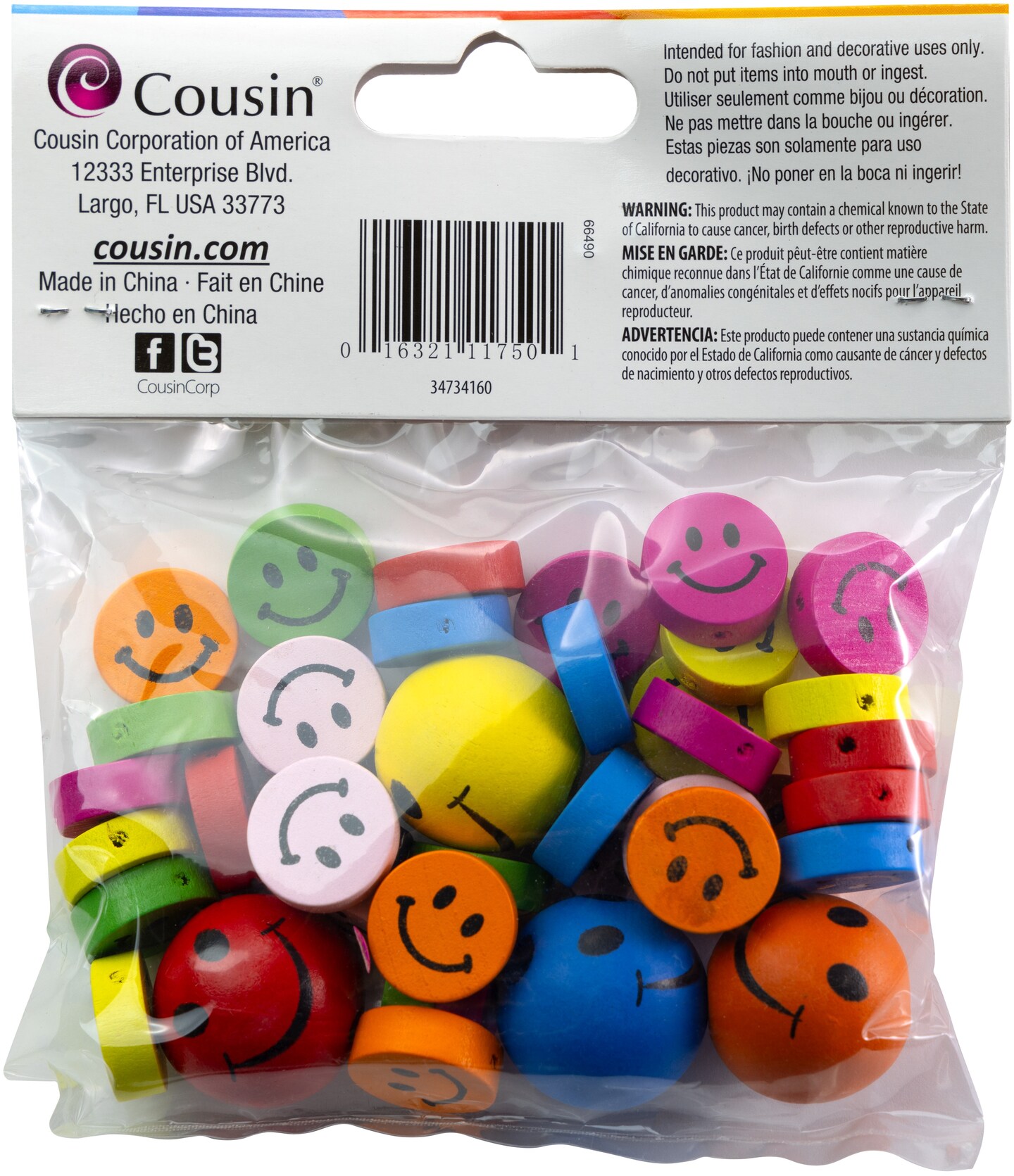 CousinDIY Fun Pack Wood Smiley Beads 40/Pkg-Assorted Colors